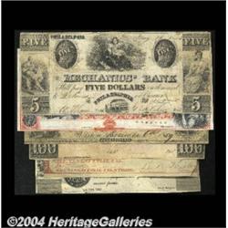 Please Pause to Peruse PennsylvaniaPhiladelphia - Mechanics' Bank $5 May 10, 1843 A25 SENC Hoober Spurious Fine (tape)Philadelphia, PA $5 remainder G10a POC "PAID" Unc.Pittston, PA - Pittston Bank $5 Dec. 6, 1859 G6a Hoober 313-4 VG POC VGWarren, PA - Lumbermens Bank $100 remainder G12 Hoober 425-10 VFShenango, PA - Shenango Coal Mines 10ó Feb. 28, 1867 Hoober 366-2 VFYork, PA - Borough of York 25ó June 19, 1843 Hoober 468-32 EF (tears, tape repairs) 6 notes <BR><BR><B>Important notice:</B> Heritage usually auctions material at the rate of 200-250 lots per hour. On some occasions eBay Live bid software or the Internet may not be able to keep up with the pace of the auction. We recommend placing a realistic absentee bid now as insurance to avoid disappointment. Occasionally the auctioneer may eliminate or reject an eBay Live bid, and the auctioneer may also reopen a lot after the close of the eBay live bidding (usually because we missed an audience bid), and may reject your bid even if it shows you as the winning bidder. By bidding via eBay Live, you agree that Heritage may award the lot to another bidder at its sole discretion under the circumstances described above or any other reasonable circumstances. Since eBay bids are not shown to us until we open the lot on the floor, we treat those bids just like floor bids. In most cases the floor responds before the eBay bid is presented to us, due to Internet lag time, so for consistency we have made it a policy that floor bids are always considered first over tie eBay live bids. Also please note that all Heritage lots purchased through eBay Live carry a 20% Buyer's Premium. Please make sure you read the Terms and Conditions before you bid. <BR><BR><B>IMPORTANT ANNOUNCEMENT ABOUT RESERVES:</B> Heritage now divulges all reserves on its web site 7 days before every auction. If you want to know whether the reserve on this lot has been met, and if not, what the reserve amount is, please visit this lot page on the HeritageCoin.com web site, or email: bid@HeritageGalleries.com