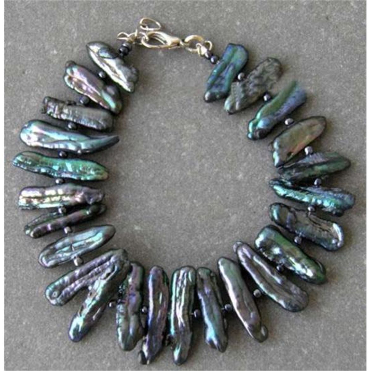 Pleasing Peacock color Genuine Pearl sticks Bracelet, measures approximately 7.5in, silver lobster claw closure