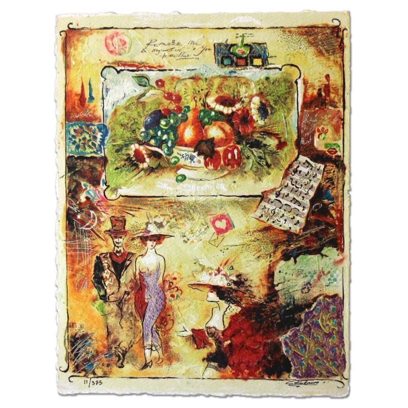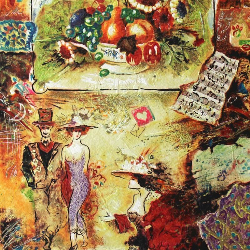 "Pleasures" is a limited edition Serigraph on Paper by Sergey Kovrigo. The piece is numbered, hand signed by the artist, and come with a letter of authenticity. Measures approximately 13" x 10".