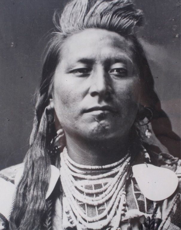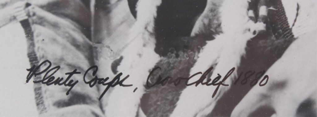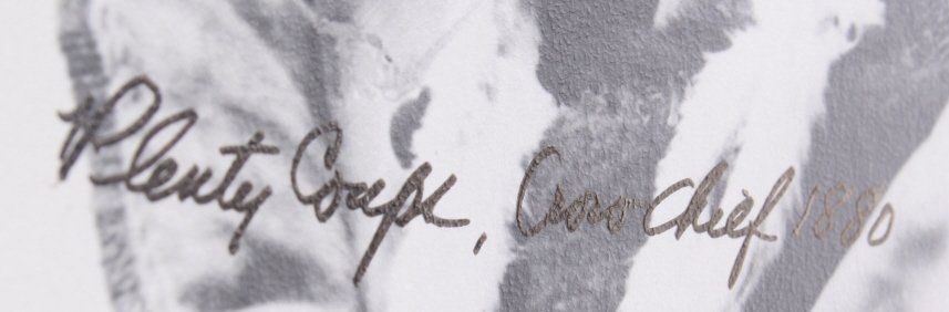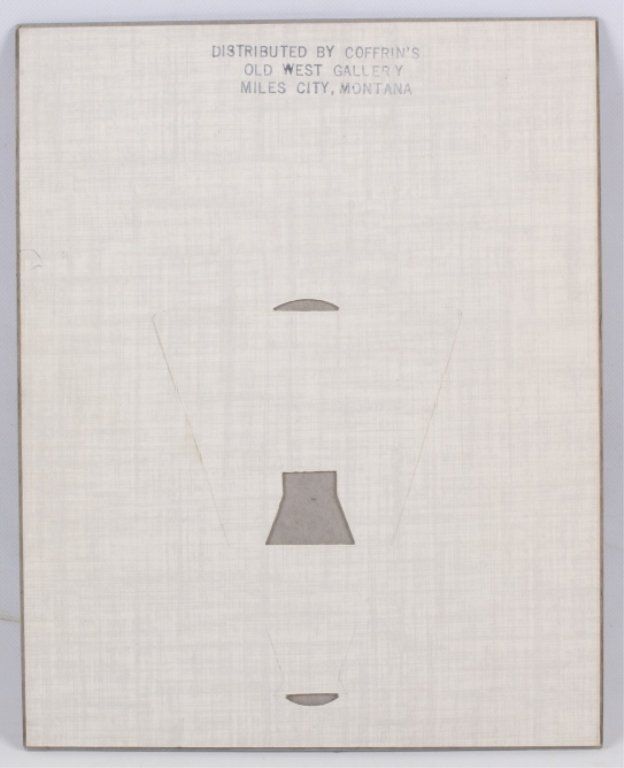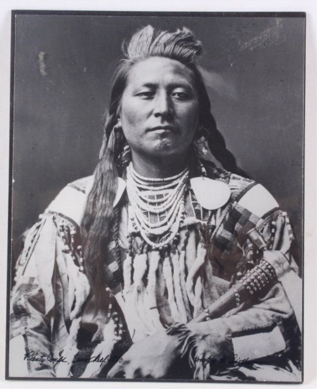 This is a hand labeled print that was distributed from the Old West Gallery in Miles City, Montana and is of Plenty Coups, the crow Chief. This is in good condition and is a good quality print. Measures 8"x10"