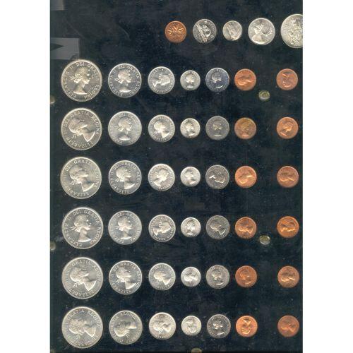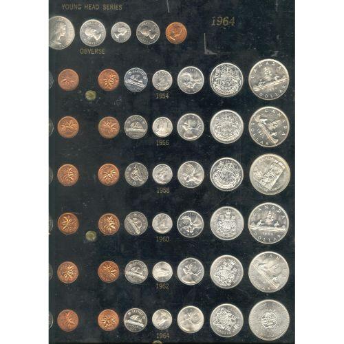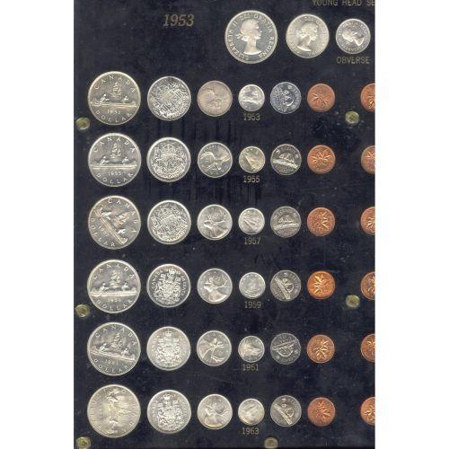 Plexiglass set containing year sets from 1953 to 1964 with a second 1964 set to show the obverses. 1954 and up ar PLs with many of the 5 cents being MS, 1953 is MS alos. 13 sets in all, these sets are seldom offered and are always popular. Expect S&H supplement for winners that need the items shipped.