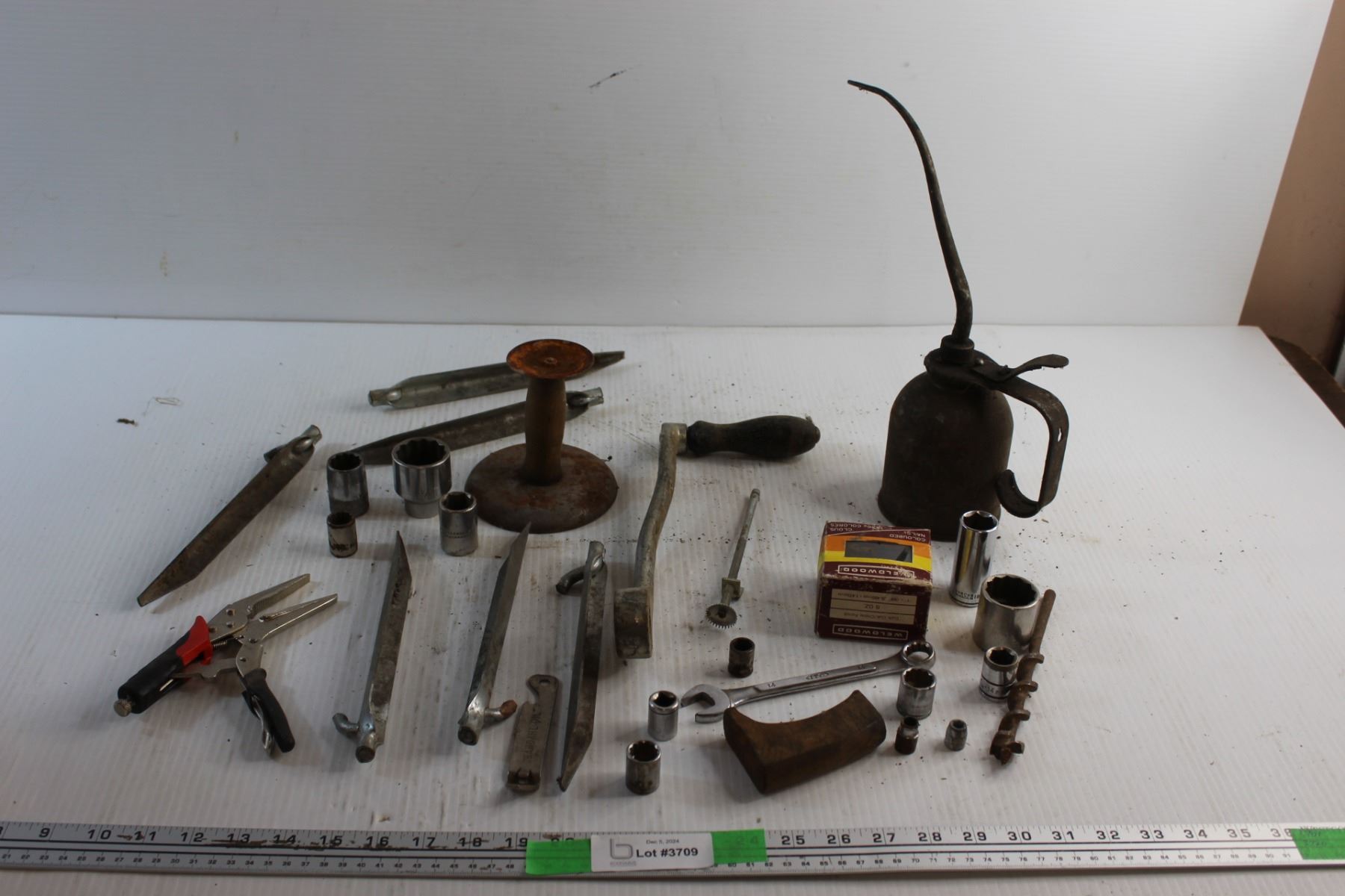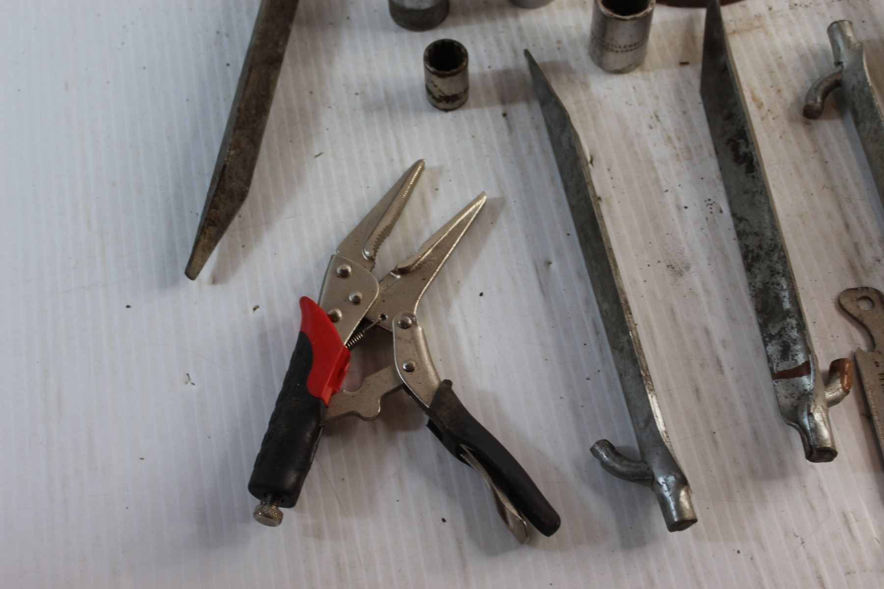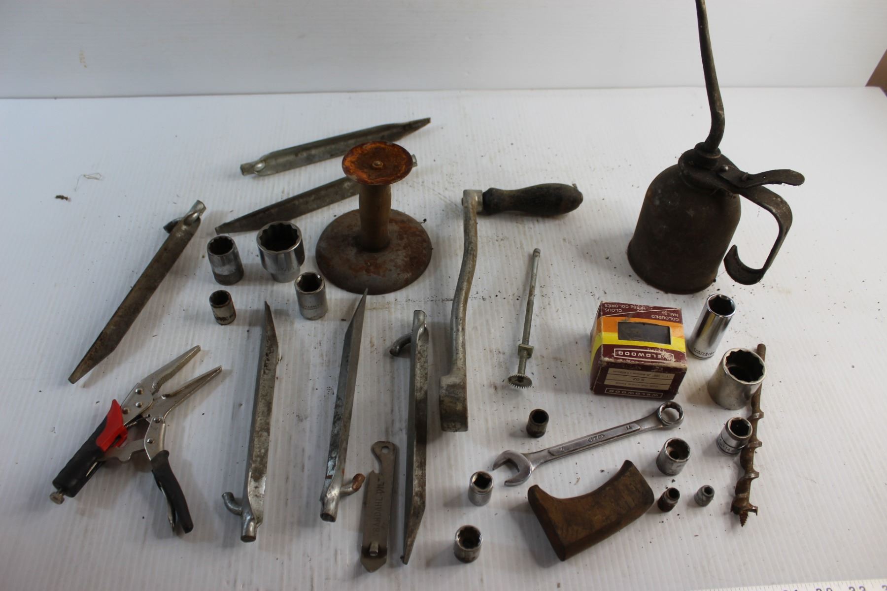 Pliers, Wrench Sockets, Wrenches, Oil Can, Drill Bit and Misc.