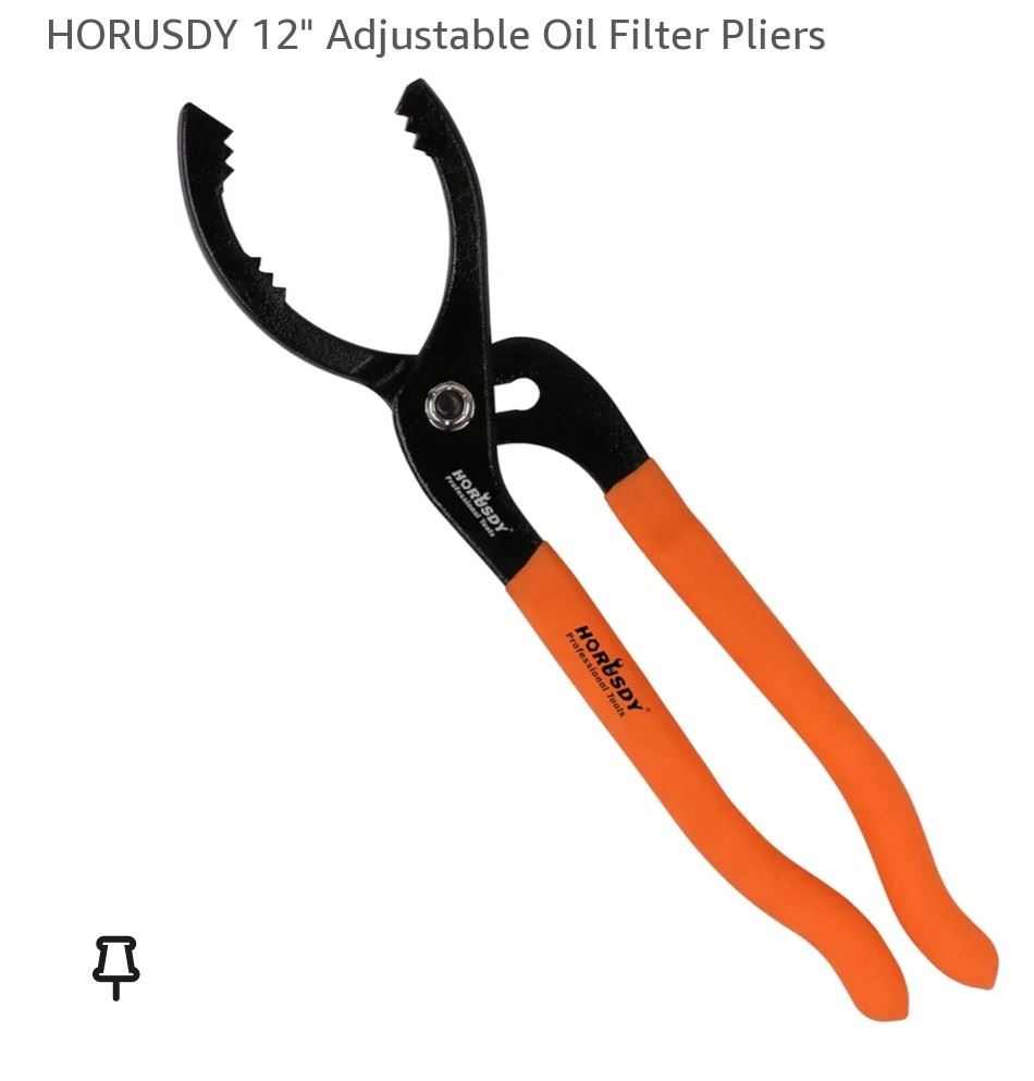 HORUSDY 12" oil filter pliers, adjustable, non-slip grip, ideal for automotive work, new.