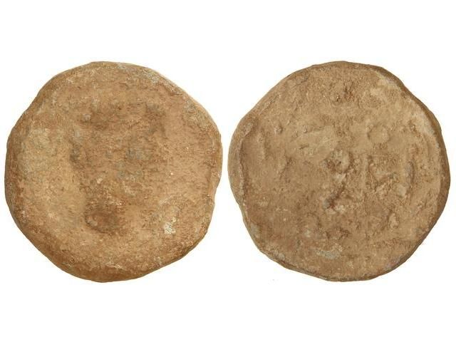 Plomo Monetiforme. Anv.: Cabeza masculina a derecha. ¿Claudio?. Rev.: Láurea. 81 grs. CCP-7 sim. BC.