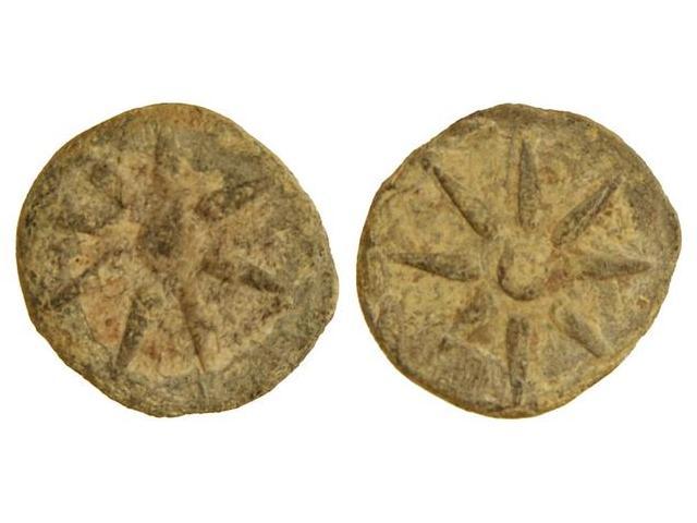 Plomo monetiforme. ¿MALACA?. Anv.: Estrella de ocho puntas. Rev.: Estrella de ocho puntas. 3,30 grs. Similar moneda AB-1745. Pátina beige. C.C.P.-No cat.; G.G.-No cat. MBC+.