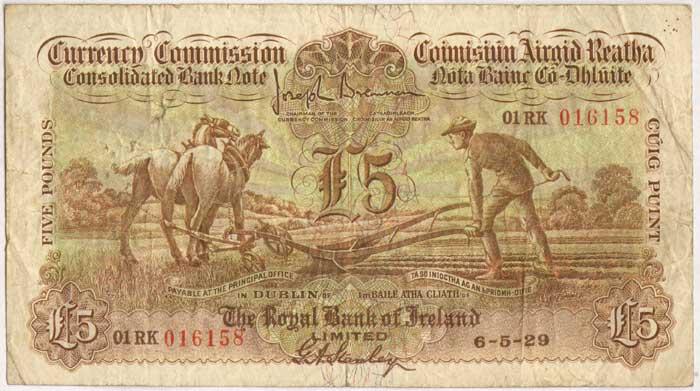 Ploughman. Royal Bank Five Pounds. 6-5-29
