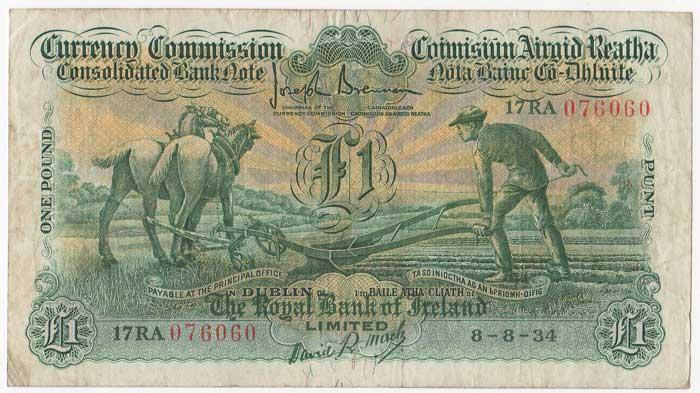 Ploughman. Royal Bank. One Pound. 8-8-34