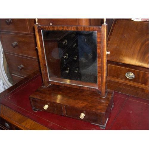 Delightful Pedestal mirror with PLUM Pudding Veneers creating a Very decorative object . From the end of the Regency period c1815-20.Twin columns support original plate above two drawers with brass drop handles.....wonderful condition.
