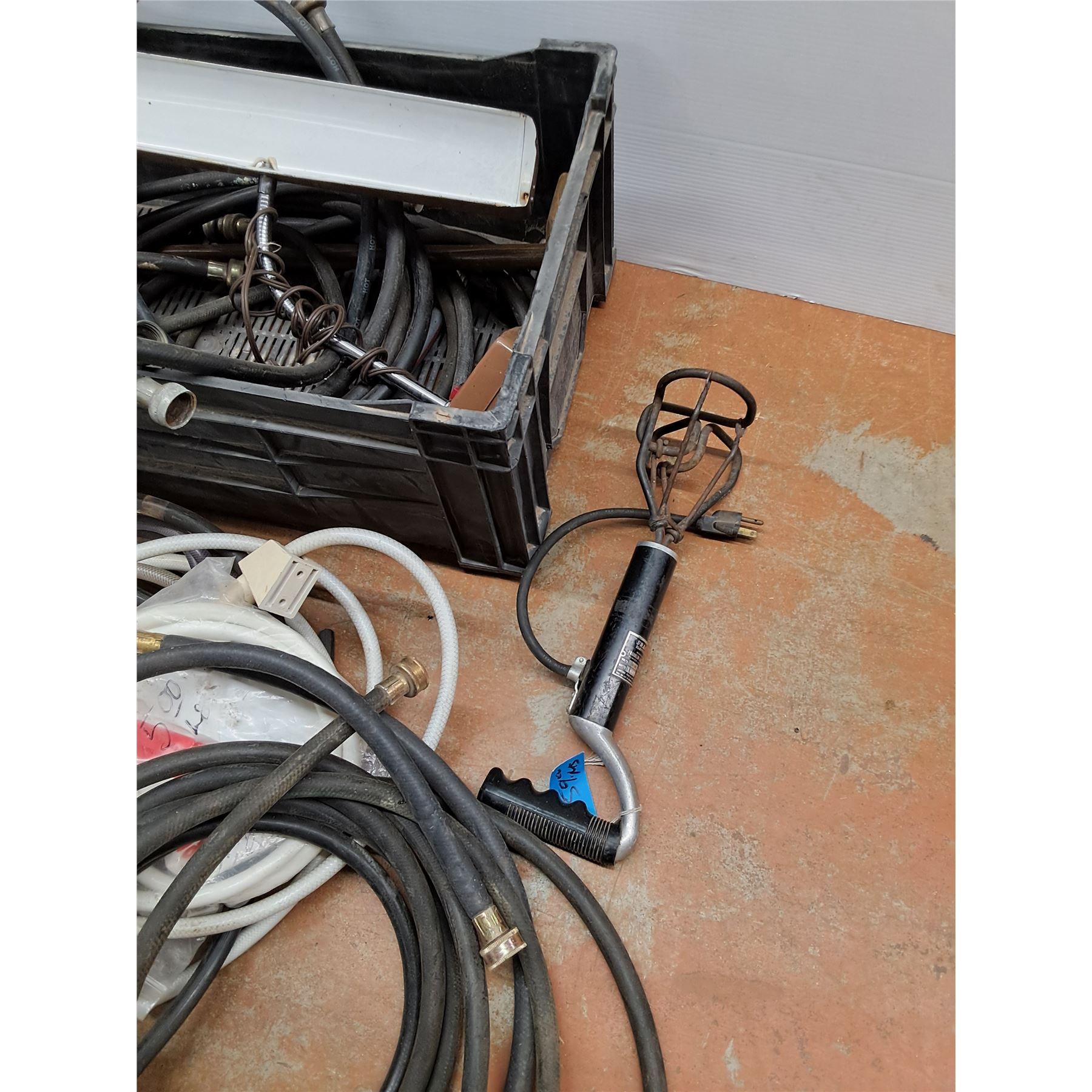 **Plumbing Hoses, Plastic Crate, Vintage Desk Top Lamp, As Is, Cannot Ship