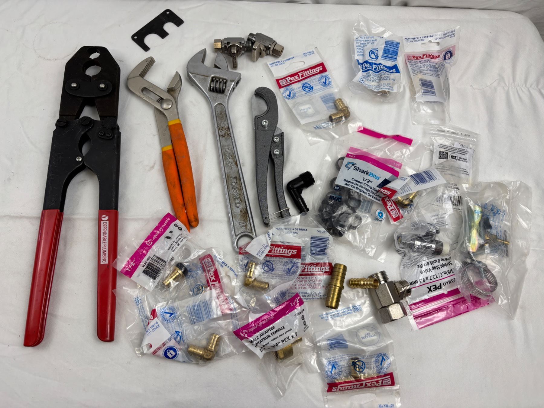 Includes various fittings (new and used), Dependable Plumbing, Mastercraft, and more