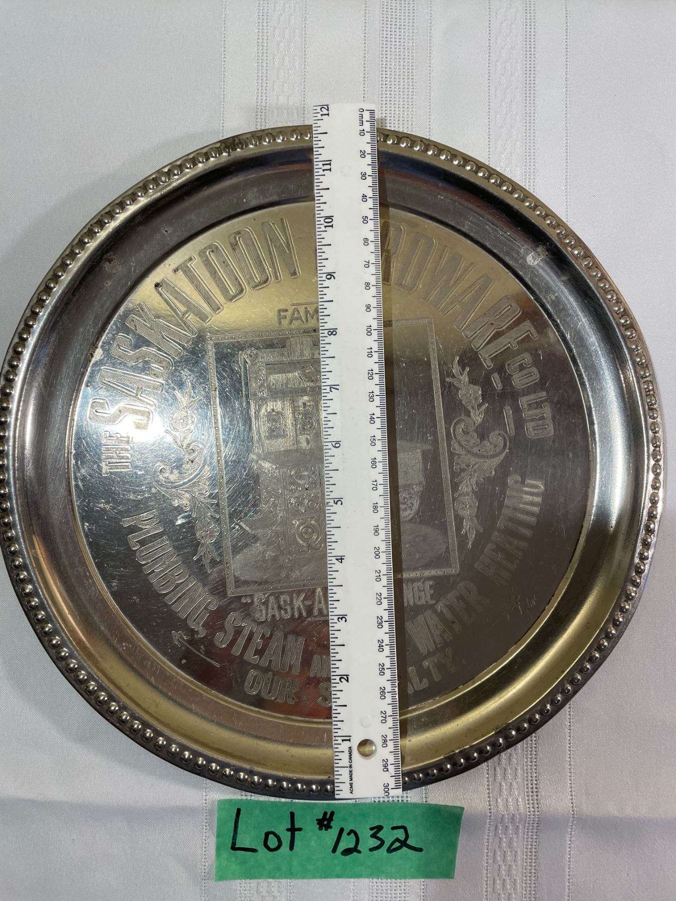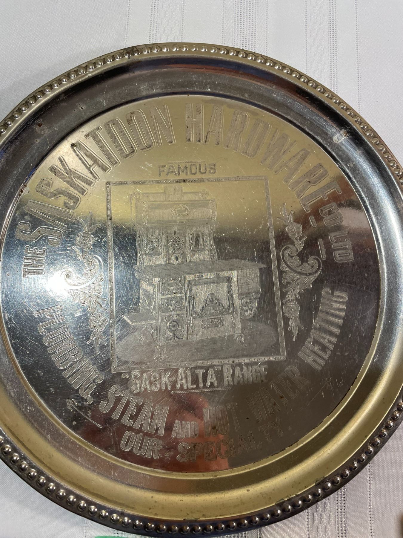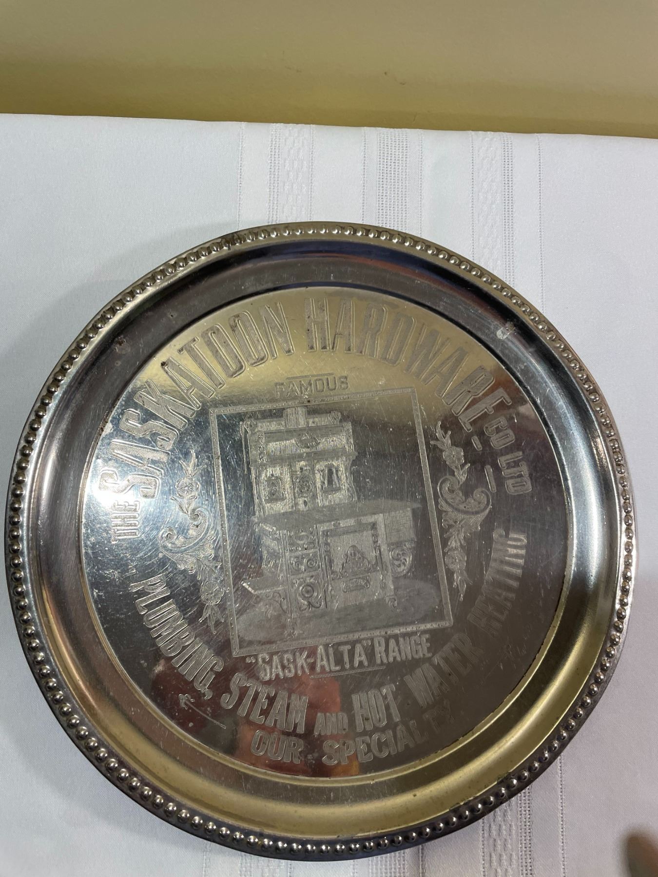 (1) Silver Tray - The Saskatoon Hardware Co. Ltd. Sask-Alta, Range, Plumbing, Steam and Hot Water Heating our Speacialty