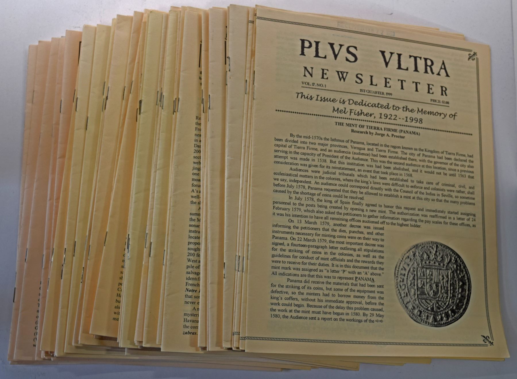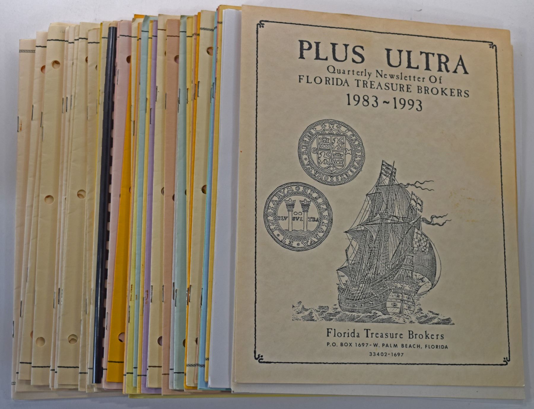 This lot contains issues of the spanish colonial numismatic and treasure salvaging newsletter publication: Plus Ultra Newsletter. Plus Ultra was started by Ernie "Seascribe" Richards in 1983 as a quarterly publication until its final issue, 4th quarter 2016. This lot contains the complete run of the newsletter. Issues included in this lot: