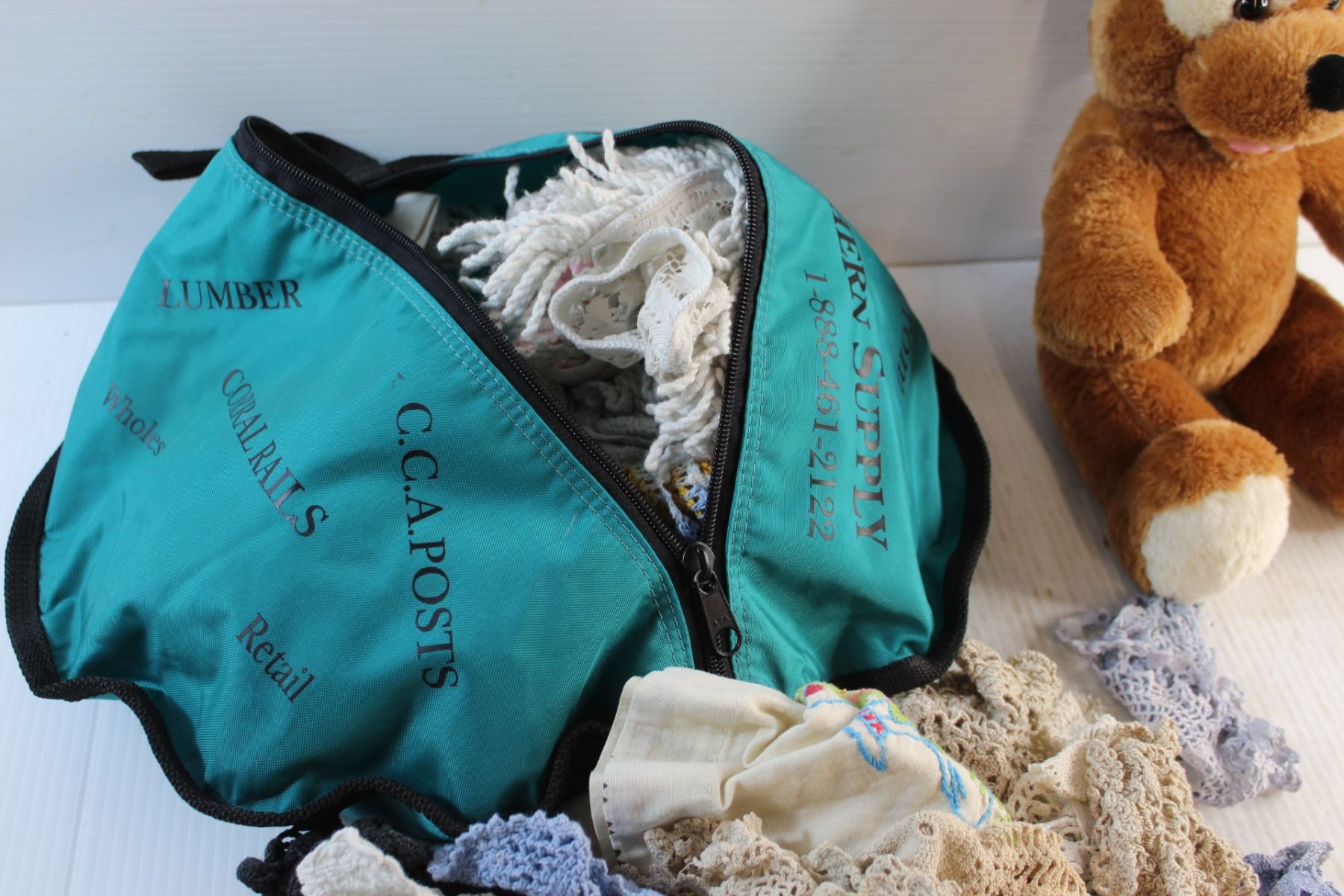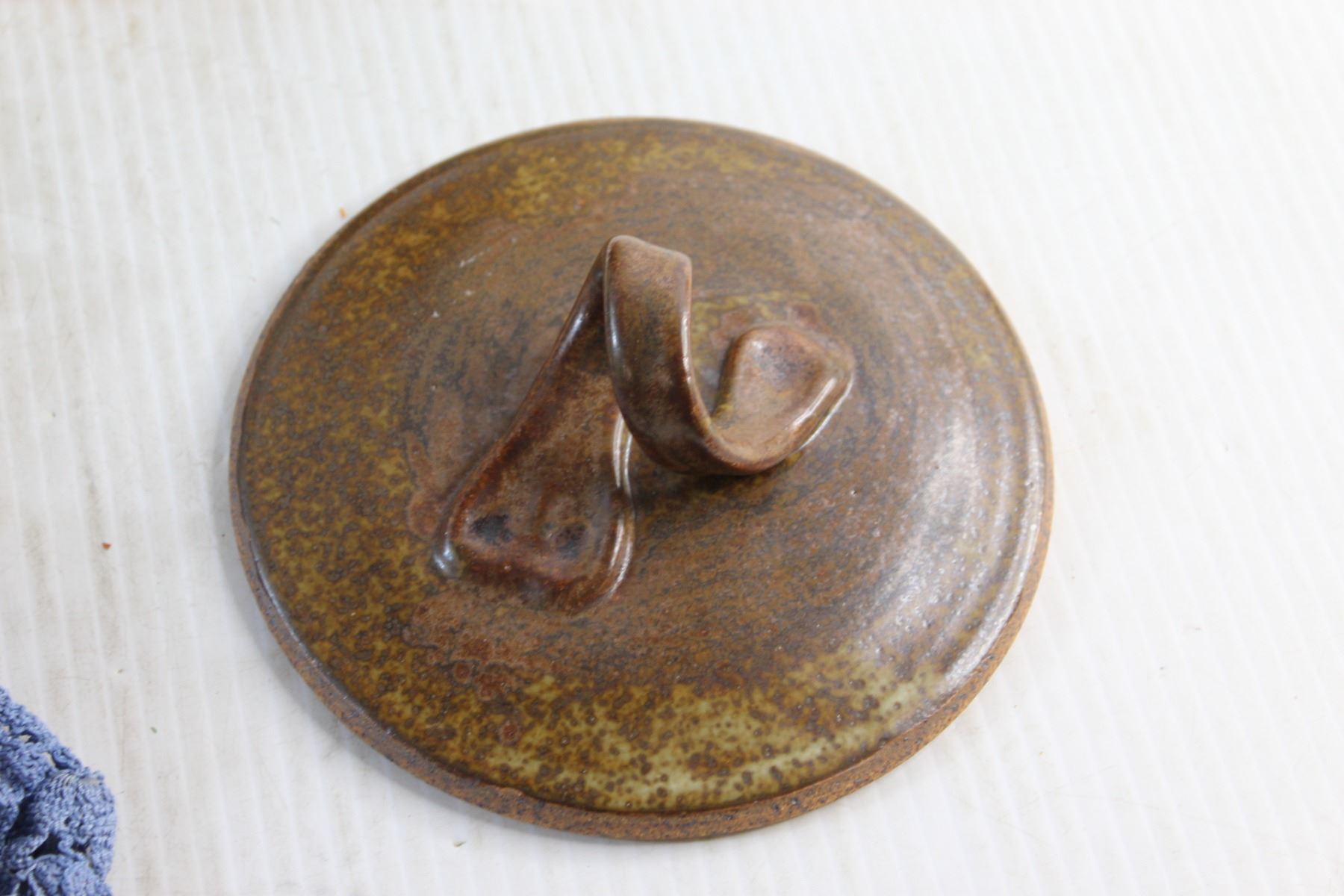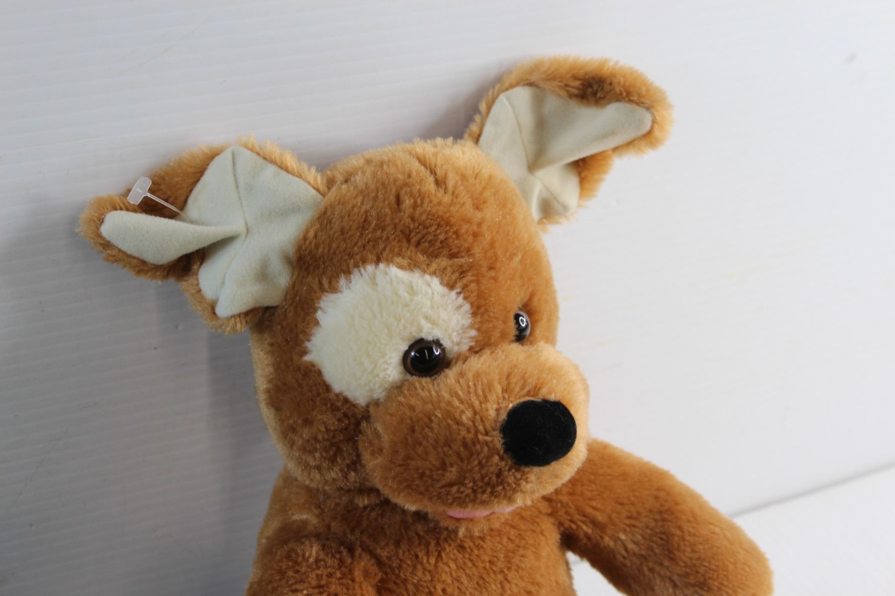 Plush Puppy, Fabric Scraps and Ceramic Pot Lid 6''