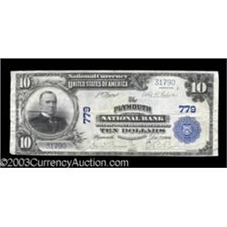 <TABLE cellSpacing=0 cellPadding=0 width="100%" bgColor=#000000 border=0><TBODY> <TR><TD width="100%"><TABLE cellSpacing=1 cellPadding=3 width="100%" border=0><TBODY><TR><TD width="100%" bgColor=#79735c><FONT face=arial color=#ffffff size=3><B>Description</B> </FONT></TD></TR><TR><TD width="100%" bgColor=#ffffff><FONT face=arial size=2><B>Plymouth, MA</B></I> - $10 1902 Plain Back Fr. 624 <B>The Plymouth NB</B></I> Ch. # 779<BR>A none too common bank in large size, particularly in high grade. Nice <B>Very Fine.</B></I> (350-550 ) </FONT></TD></TR></TBODY></TABLE></TD></TR></TBODY></TABLE><BR><TABLE cellSpacing=0 cellPadding=0 width="100%" bgColor=#000000 border=0><TBODY><TR> Important notice: Heritage usually auctions material at the rate of 200-250 lots per hour. On some occasions eBay Live bid software or the Internet may not be able to keep up with the pace of the auction. We recommend placing a realistic absentee bid now as insurance to avoid disappointment. Occasionally the auctioneer may eliminate or reject an eBay Live bid, and the auctioneer may also reopen a lot after the close of the eBay live bidding (usually because we missed an audience bid), and may reject your bid even if it shows you as the winning bidder. By bidding via eBay Live, you agree that Heritage may award the lot to another bidder at its sole discretion under the circumstances described above or any other reasonable circumstances. Also please note that all Heritage lots purchased through eBay Live carry a 20% Buyer's Premium. Please make sure you read the Terms and Conditions before you bid.</TR></TBODY></TABLE>