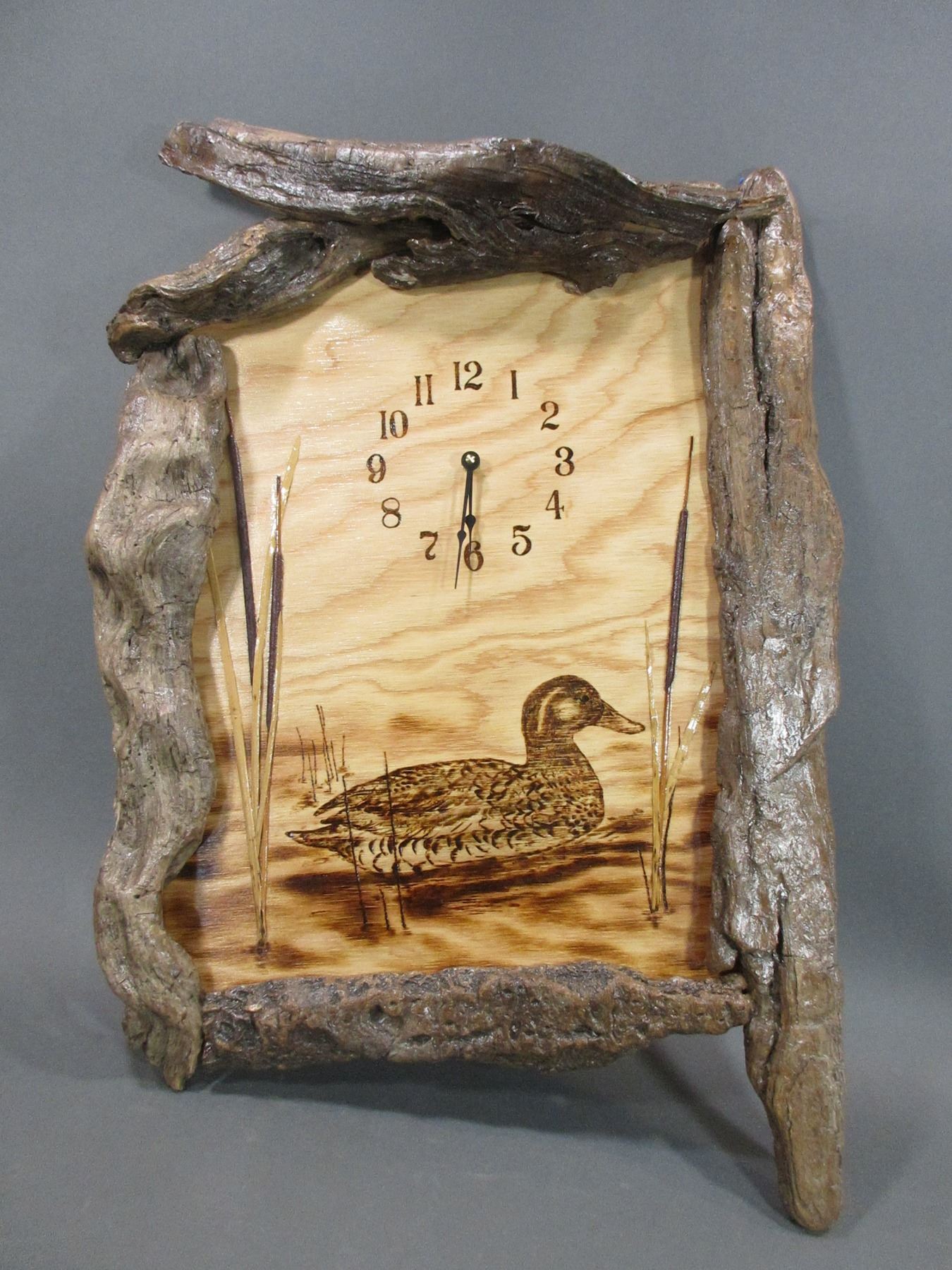 Plywood Duck Clock- Bark Frame- 23" X 19"