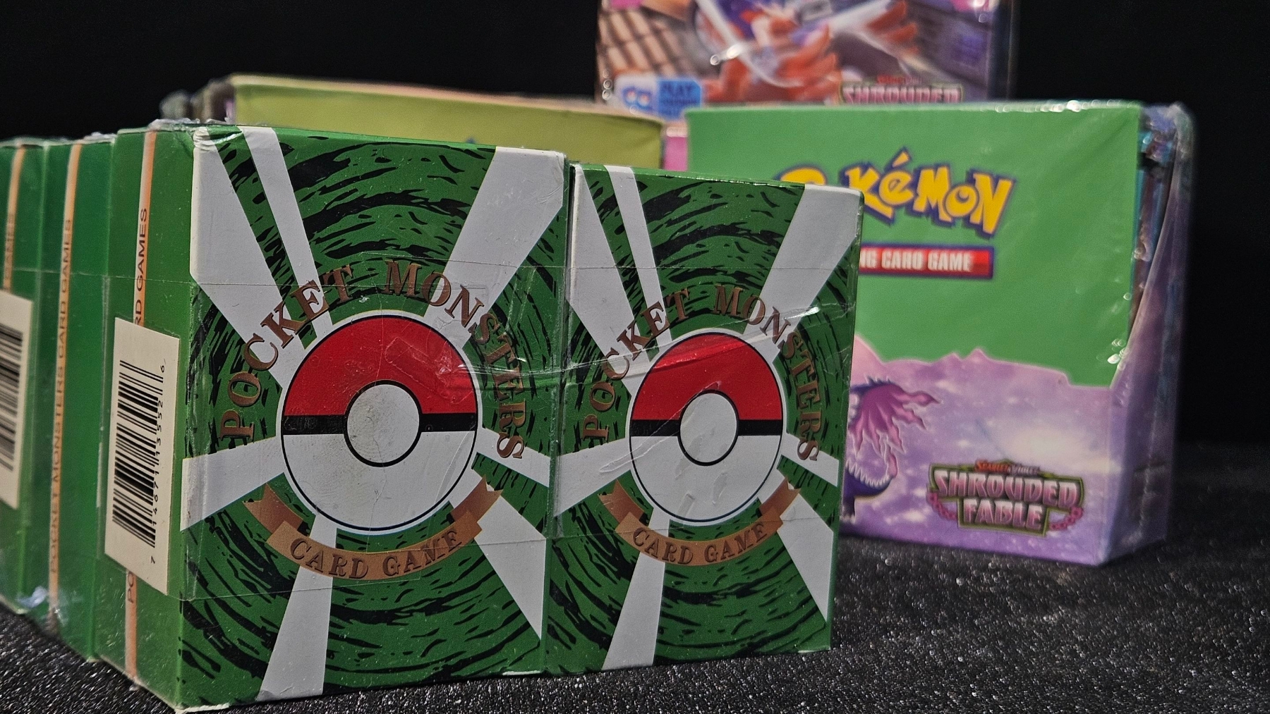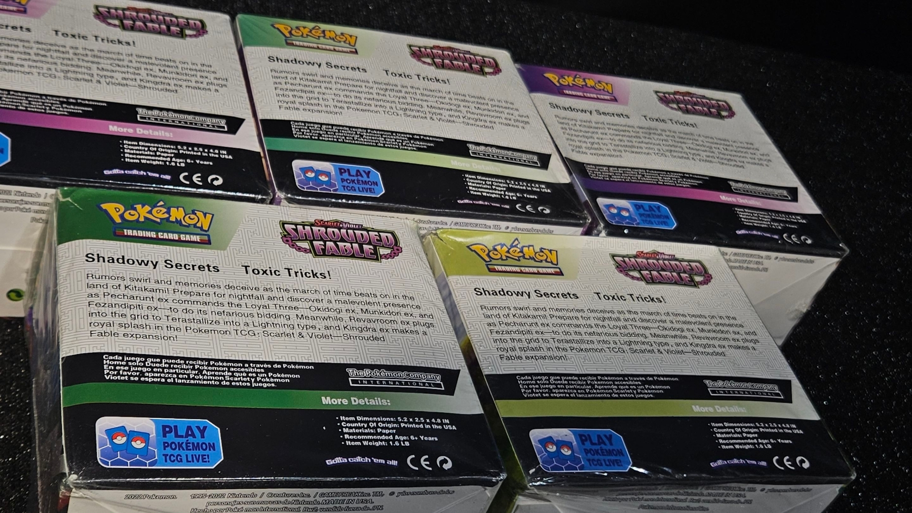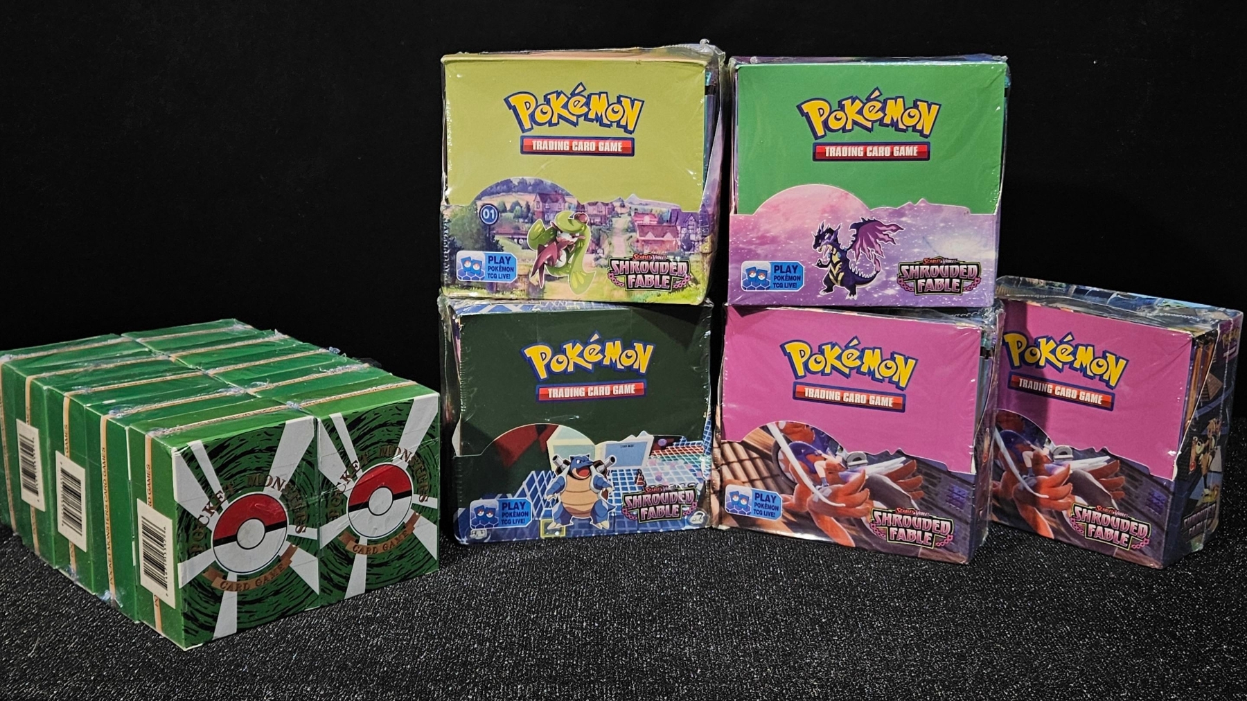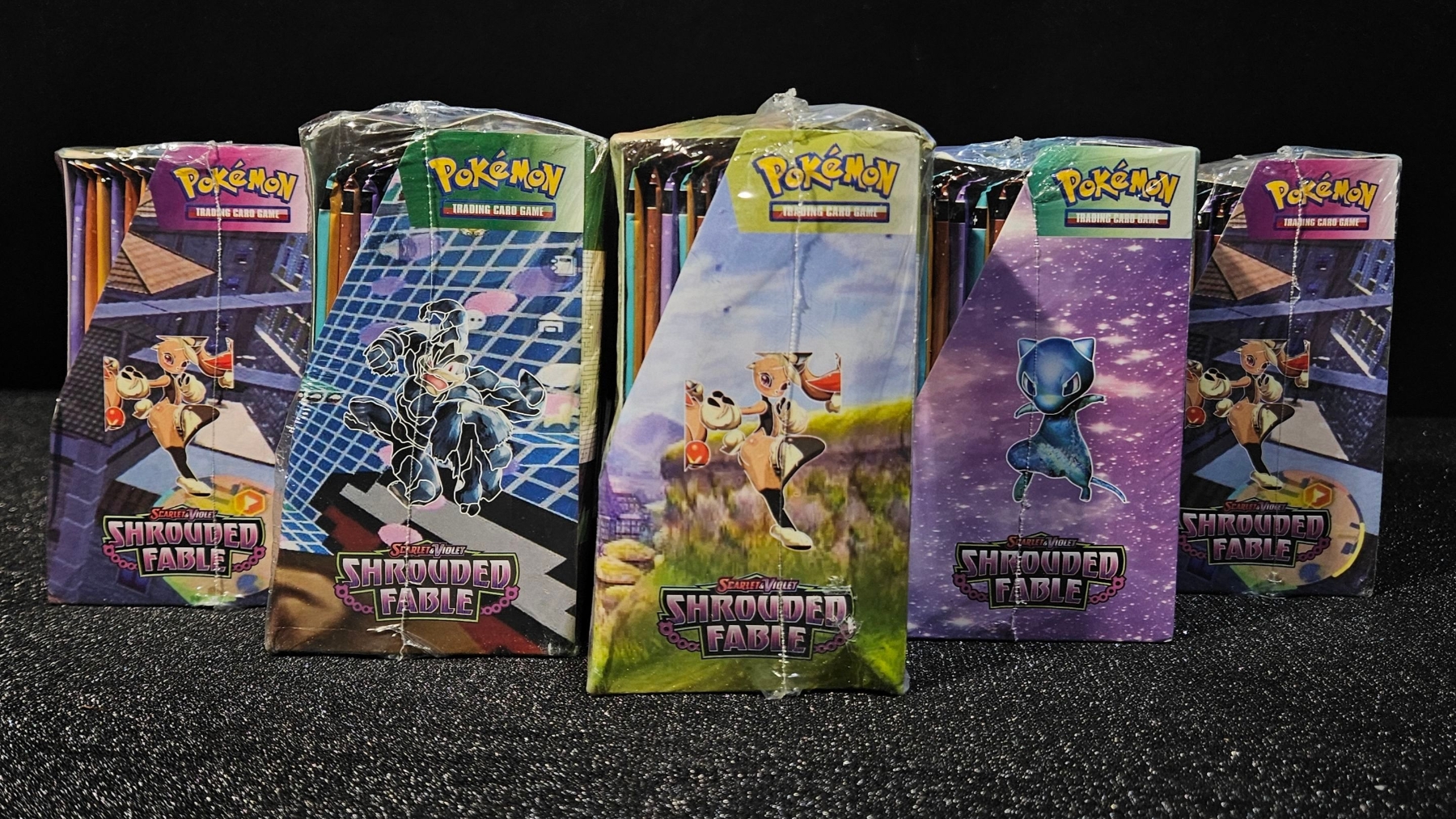 Upgrade your decks with a Po-kee-mon Shrouded Fable booster bundle! This lot includes five sealed booster boxes, plus an additional ten pocket monsters packs, giving you dozens of chances to pull your chase cards! The Po-kee-mon Shrouded Fable booster bundle is perfect for avid collectors and for those who love the thrill of opening packs.