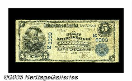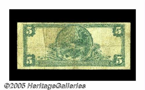 <B>Pocahontas, IA</B></I> - $5 1902 Plain Back Fr. 598 <B>The First NB</B></I> Ch. # (M)6303<BR>Large notes only from this bank, the first of two institutions to fail in this small farming community. <B>Very Good-Fine,</B></I> a more than acceptable example.