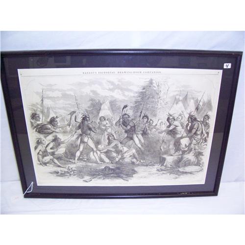 Pocahontas Saving The Life Of Captain Smith Wood Cut Print Form Ballou's Pictorial Framed 25" x 18"