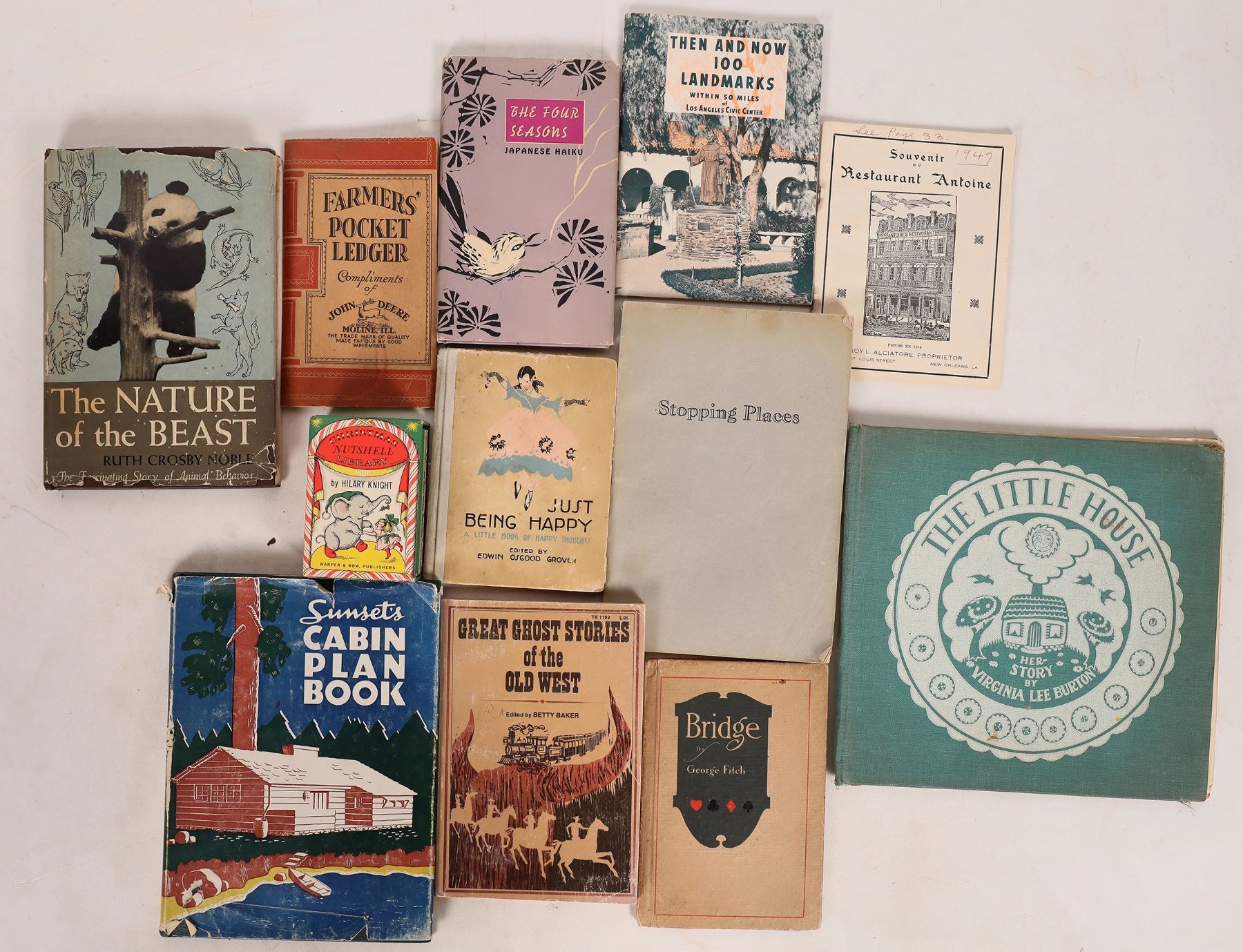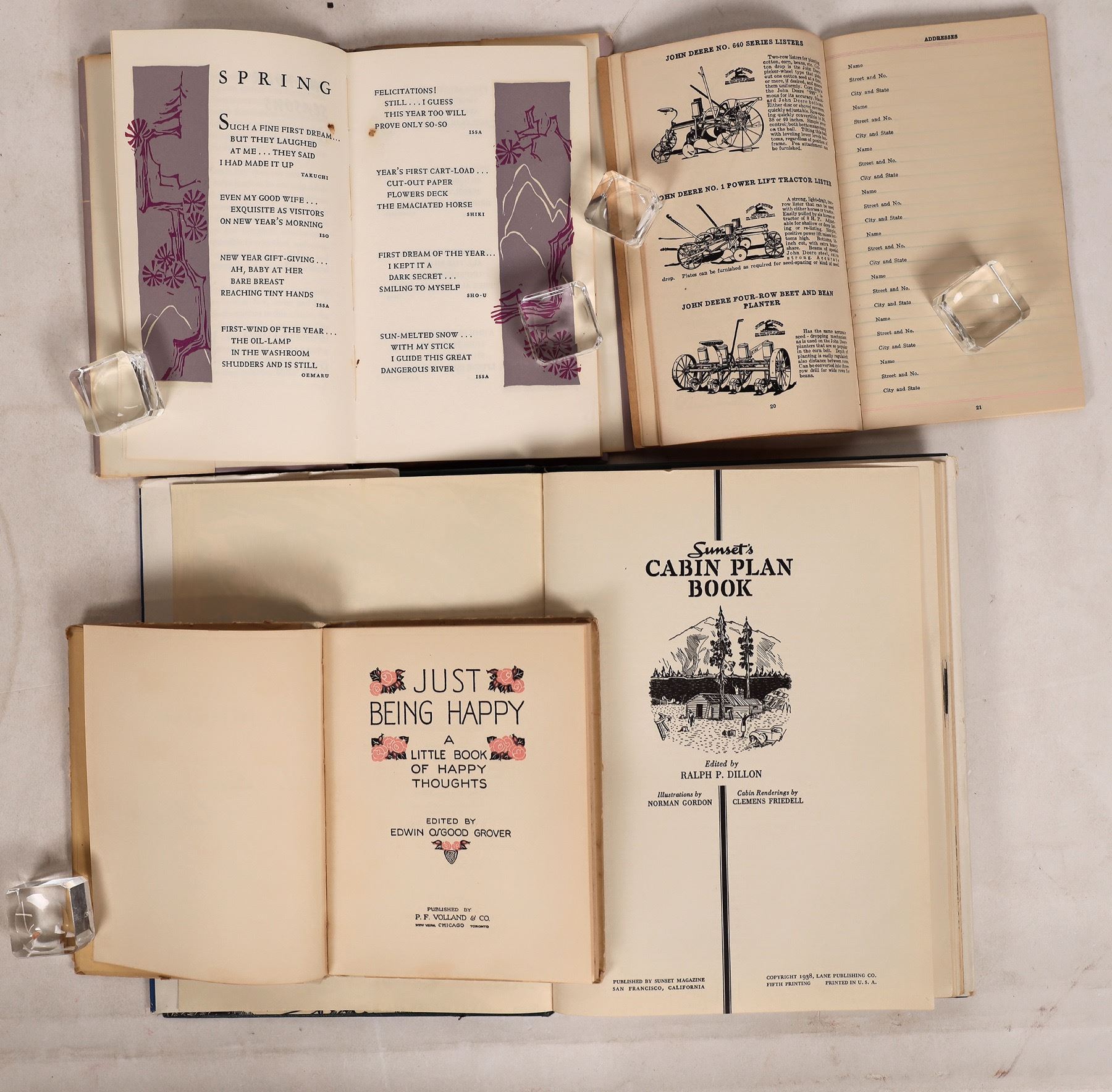 14 small books. Los Angeles, Cabin Plan Book, Bridge, Old West, John Deere Farmers' Pocket Ledger, The Nature of the Beast etc. See photo.