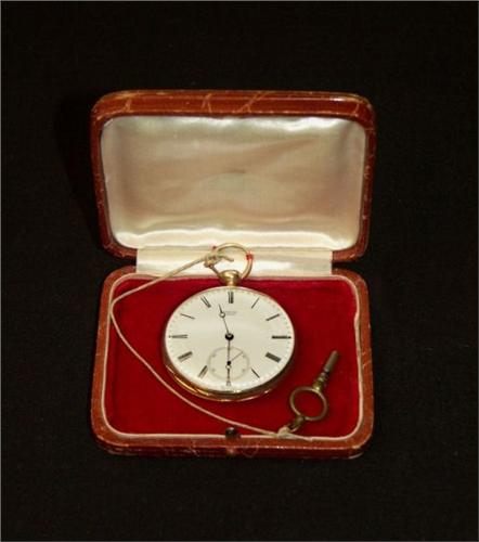 Belle montre de poche en or 18 cts à remontage par clé, signée sur le cadran, la boîte et le mouvement H. CAPT GENEVE, No 21629, cadran en émail blanc à chiffres romains, aiguilles Breguet en acier bleui, petite seconde à 6 heures, en très bon état, vers 1850