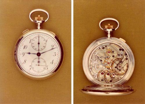 Très belle montre de poche chronographe rattrapante, boîte argent, poussoir de rattrapante en or, cadran émail avec chiffres arabes, cadran supplémentaire pour indication des minutes du compteur chronographe position à 12 heures, aiguilles en acier bleui, signée sur le mouvement TEMPOR WATCH CO GENEVA, 23 rubis sertis, poinçon de Genève, époque 1920
