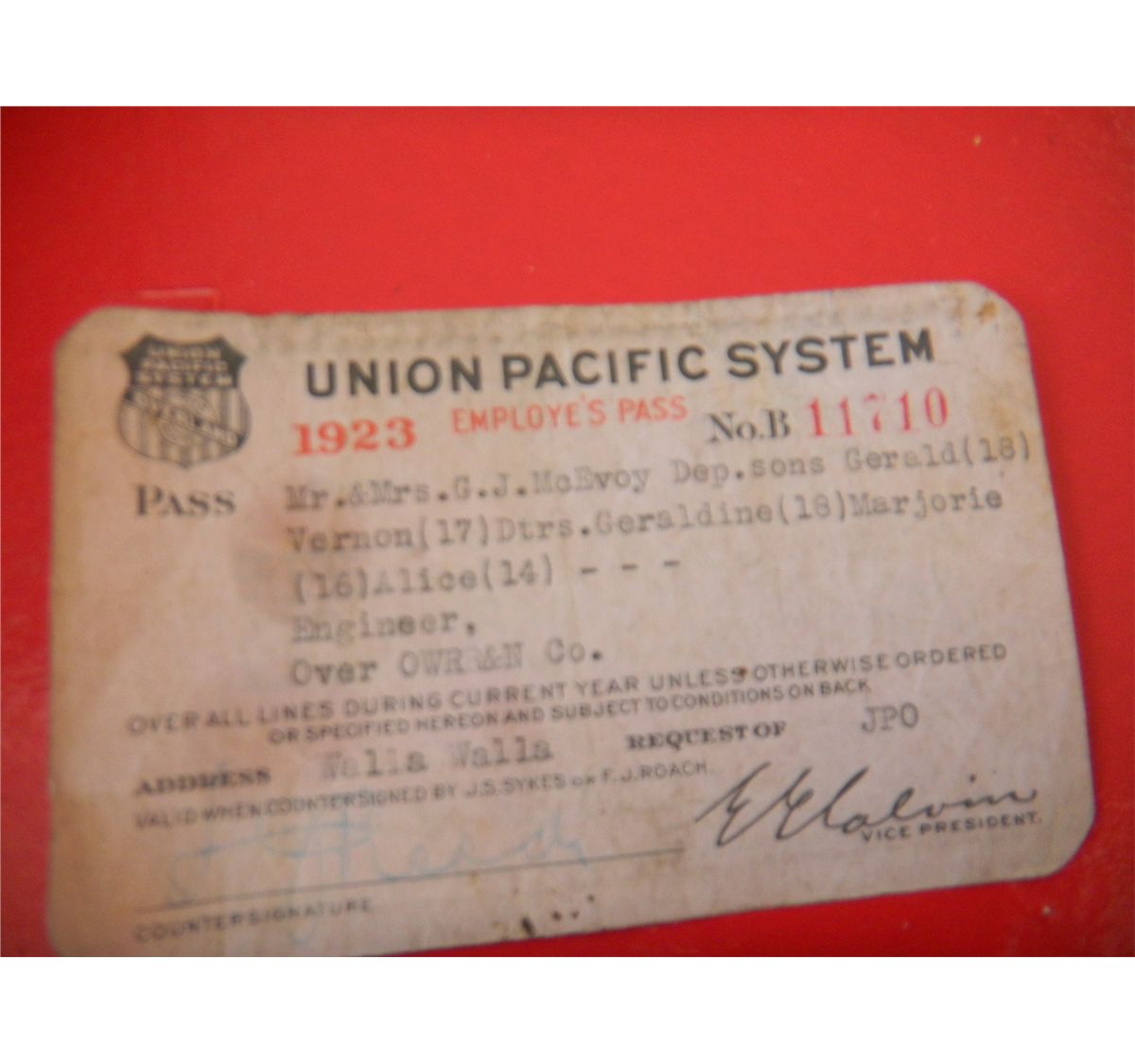 Elgin Railroad Pocket Watch with 1923 Employee pass. Circa 1920's Good Condition. Shipping $12.50 21 Jewel. B.W. Raymond on inside