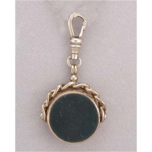 Victorian watch fob (intended to be worn with pocket watch chain--or would make a striking pendant), marked "90 gold". It is set with a swivel, on one side bloodstone, the other carnelian. The stone measures approximately 19MM in diameter and weighs approximately 9 grams.