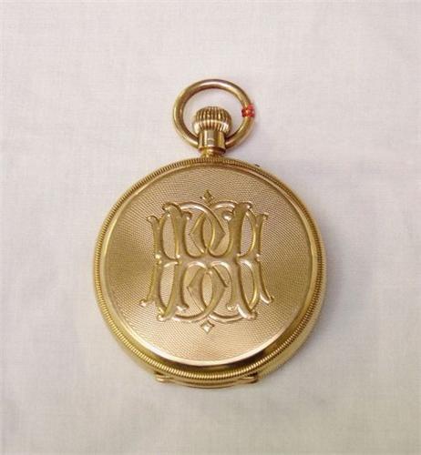 Très belle montre de poche en or 18 cts savonnette, signée sur la boîte et le cadran A. GOLAY-LERESCHE ET FILS GENEVE, cadran en émail blanc à chiffres romains, petite seconde à 6 heures, aiguilles en acier bleui, boîte en or rouge guillochée, échappement ancre, balancier bimétallique, en très bon état, avec étui, vers 1870