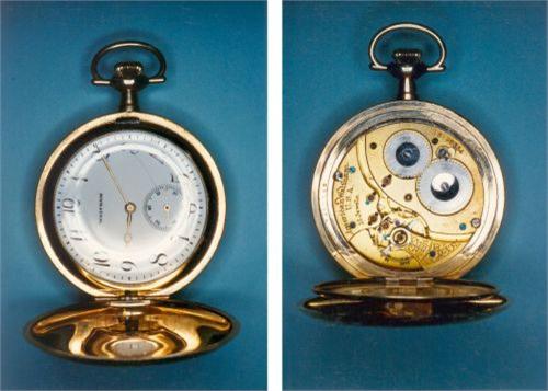 Montre de poche savonnette, plaquée or, signée American Waltham USA