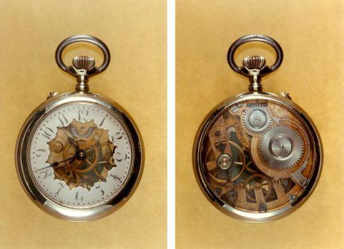 Montre de poche boîte chromée, demi-squelette, échappement à ancre à chevilles, brevet suisse No 37637, env. 1900