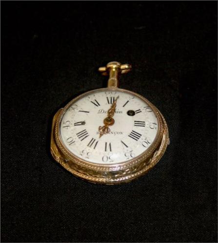 Montre à répétition quart sur cloche et à toc, en or 18 cts, signée DELPHIN A BESANCON, échappement à verge, fusée et chaîne (charnière du mouvement dessoudée), env. 1800