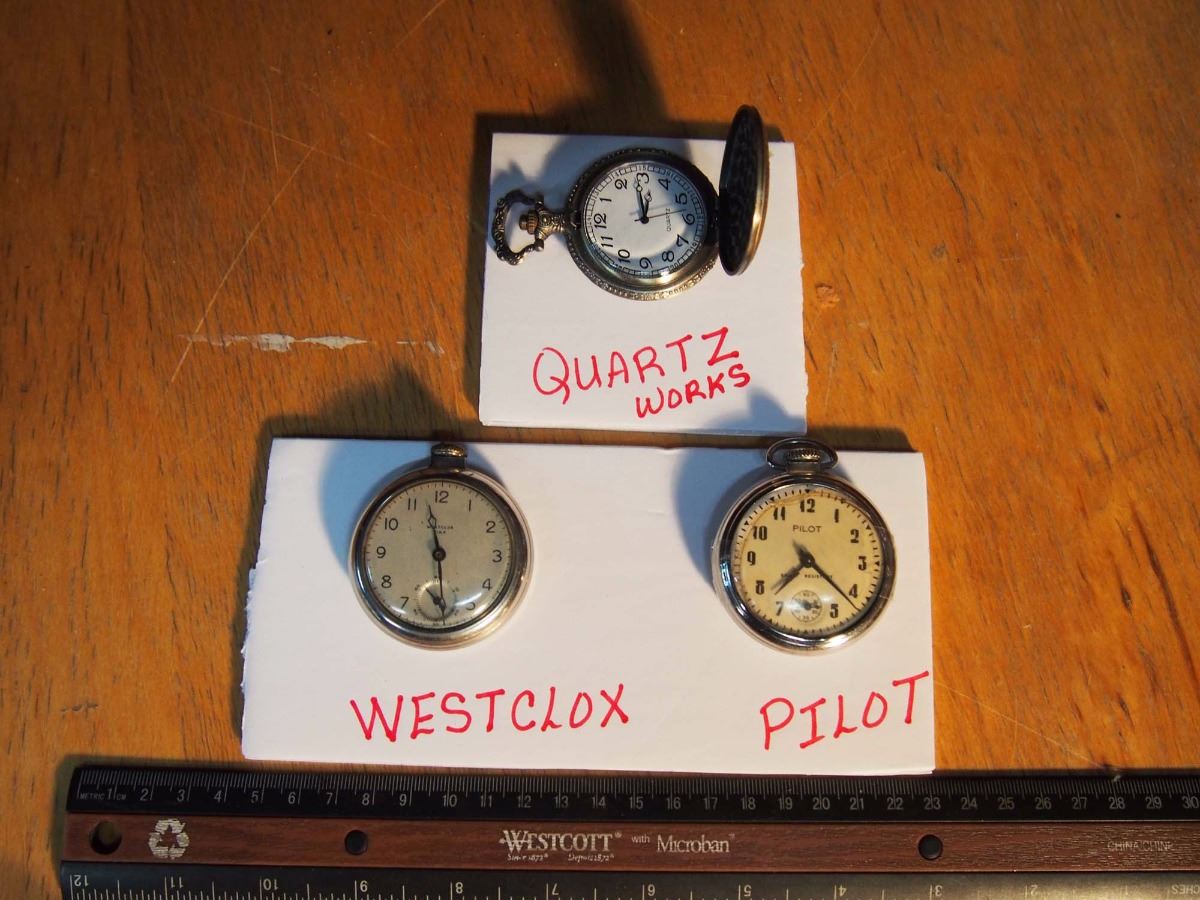 Pocket Watches (3) (Westclox & Pilot Quarts Not Working)