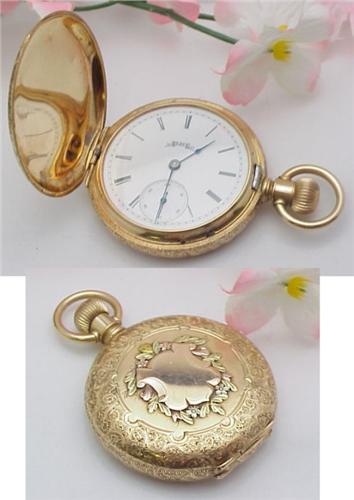 Pocket watch -Elgin beautiful multi colored case 14kt gold 40mm