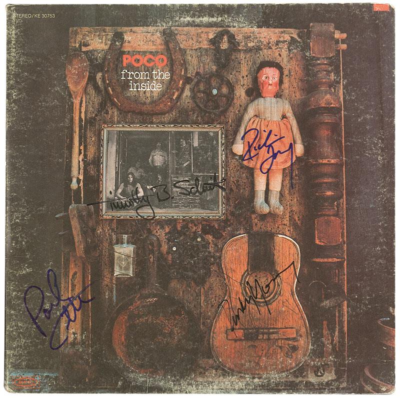 From the Inside album signed on the front cover in blue and black felt tip by Timothy B. Schmidt, Richie Furay, Rusty Young, and Paul Cotton. In very good condition, with scattered wear and creasing to covers and edges. The record is not included.