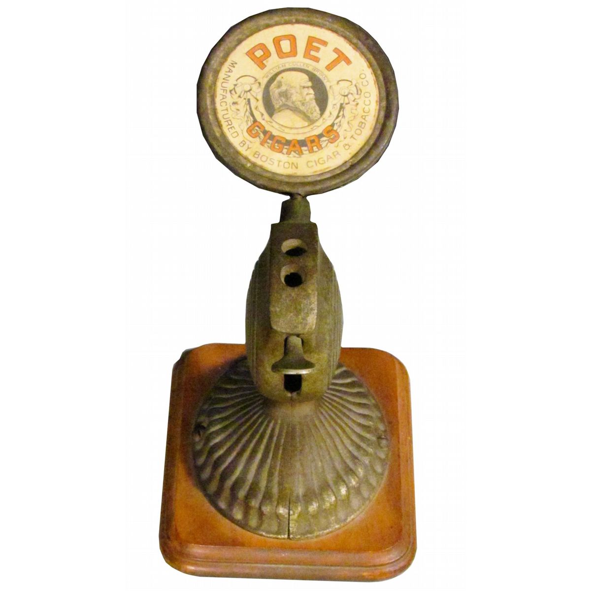 Poet Cigars Cigar Tip Cutter. Advertising flipper. Very good all original condition. 4 1/2 X 6 1/2 X 5 1/2 inches.