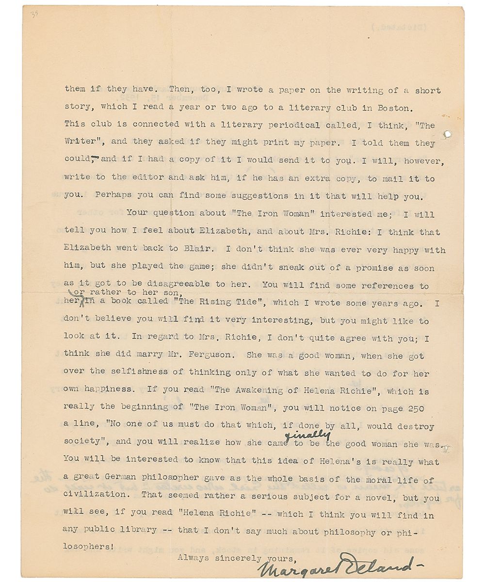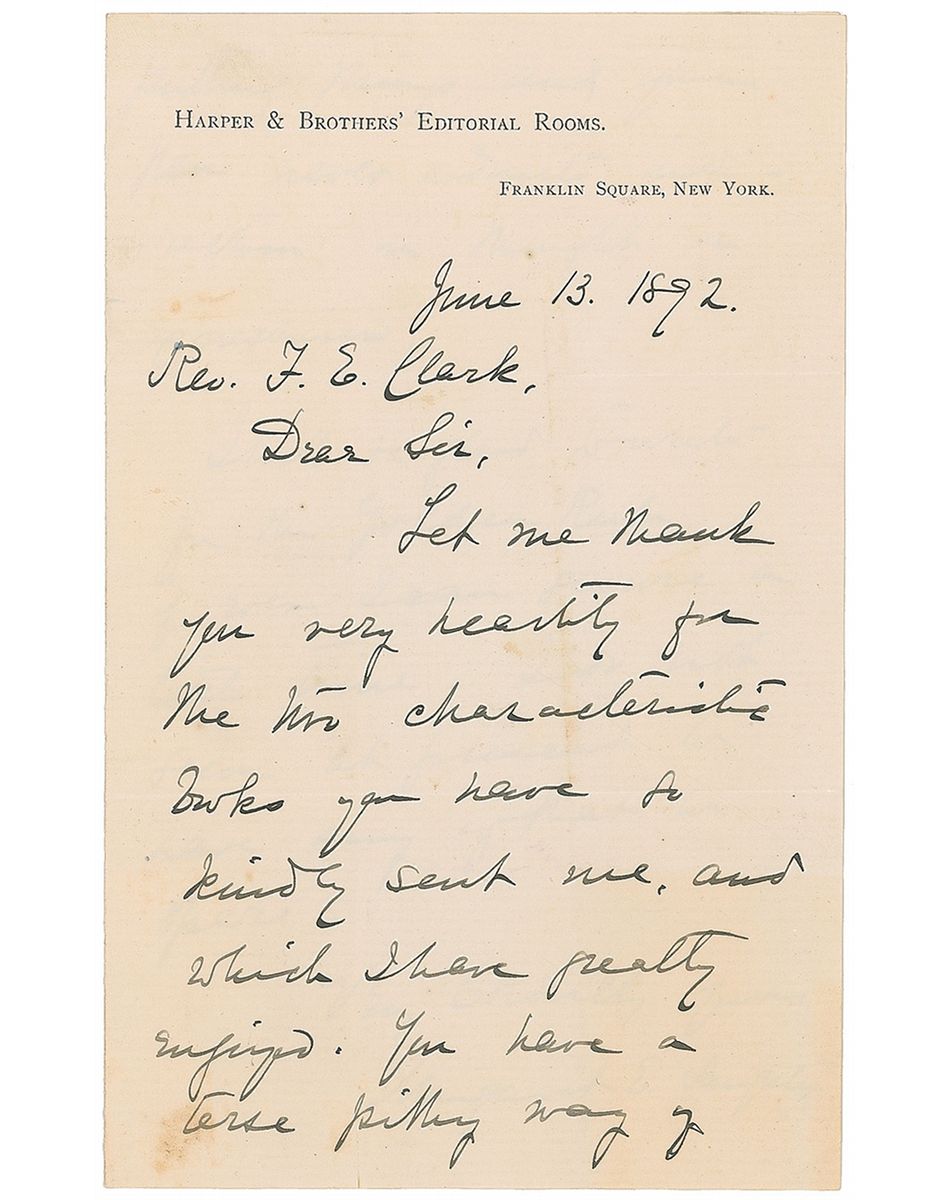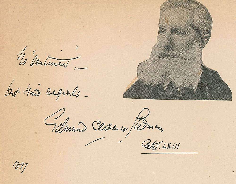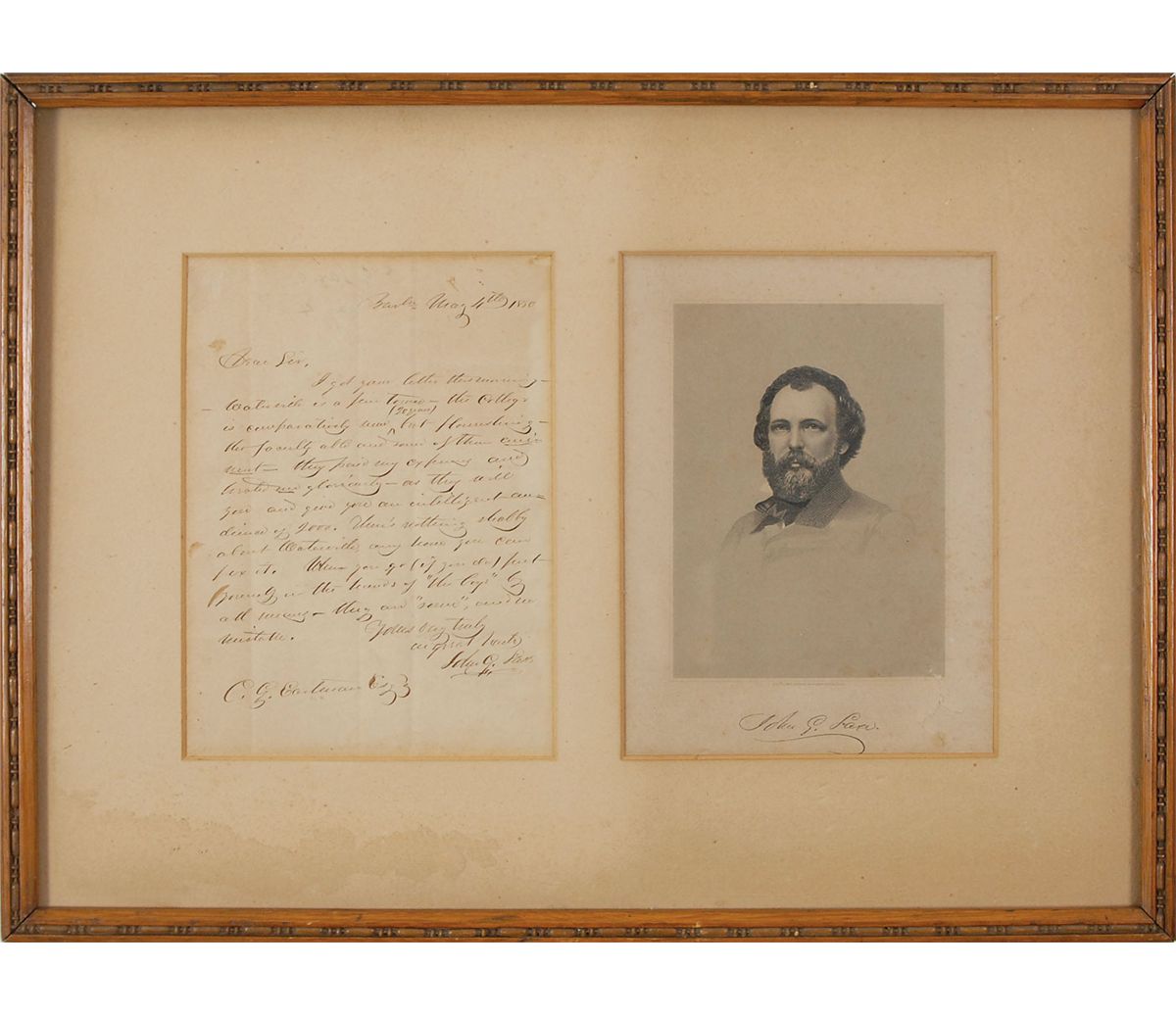 Collection of eight items, each signed by a different poet, including: Elizabeth Benger (ALS), Margaret Deland (TLS), Edwin Markham (ALS), Edwin Arlington Robinson (signature), Margaret Sangster (ALS), John Godfrey Saxe (ALS), Edmund Clarence Stedman (signature), and Richard Henry Stoddard (autograph poem). The Saxe is matted and framed with an engraving to an overall size of 18.5 x 15, and the Stoddard is matted with a photo to an overall size of 14 x 12.5. In overall very good to fine condition.