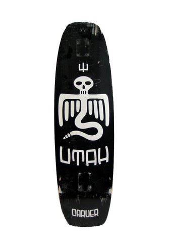 Black and white 'Carver' skateboard deck with Utah logo on the back. (approx. 34" x 10")