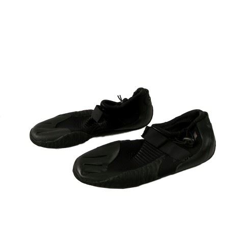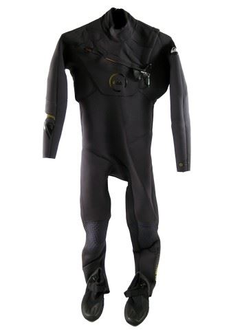 Johnny Utah (Luke Bracey) screen worn, hero, dark grey long sleeve long leg with zipper in the front 'Quiksilver' wetsuit, (size L) and black neoprene with rubber soles and velcro on the front shoes.