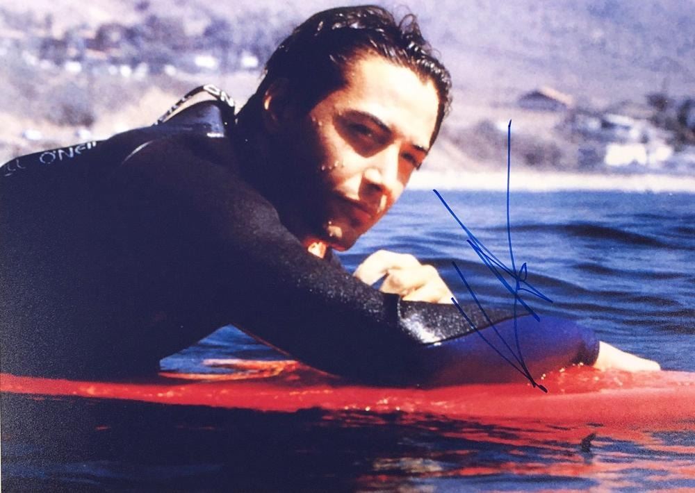 Point Break facsimile signed movie photo autographed by Keanu Reeves. 8x10 inches. This item is a reprint of an original autograph