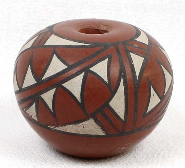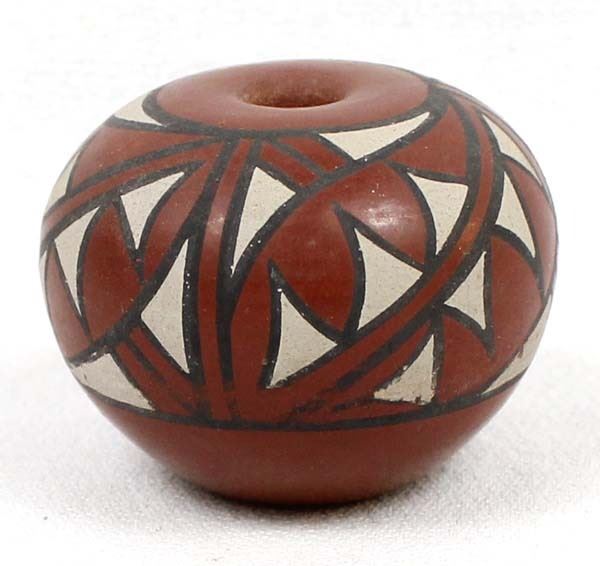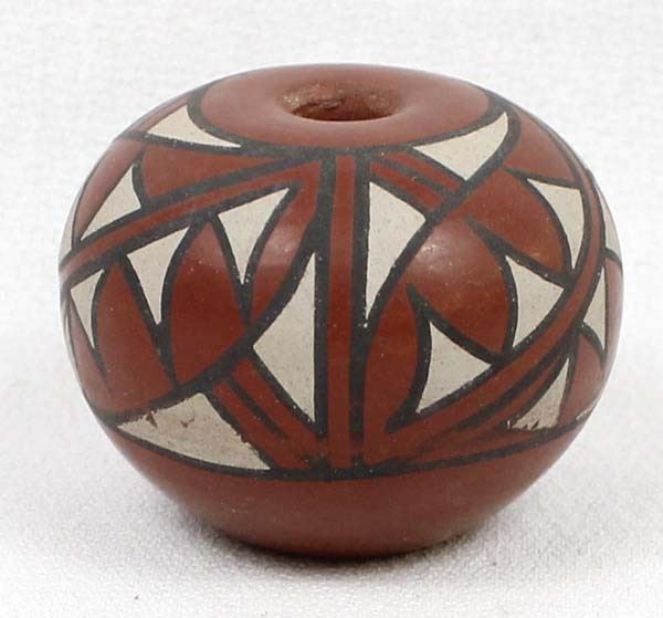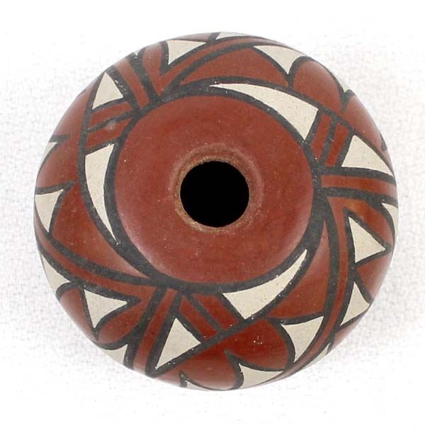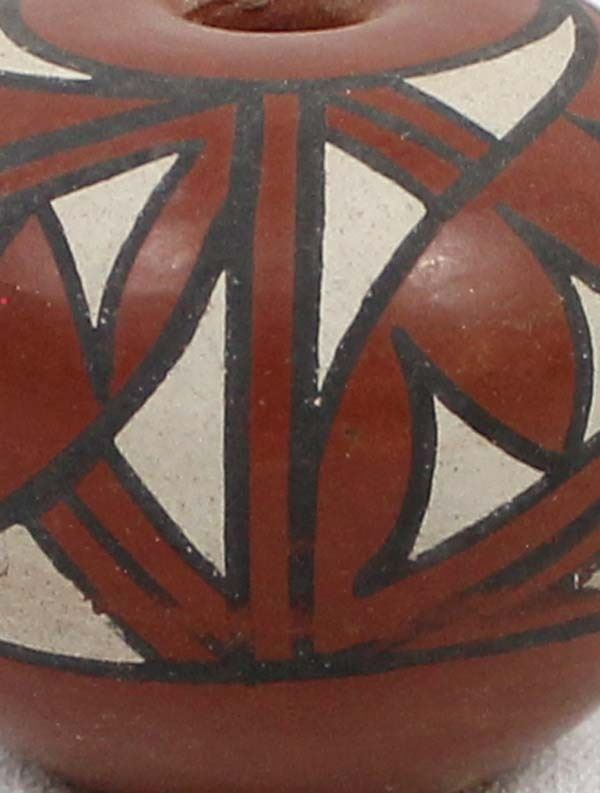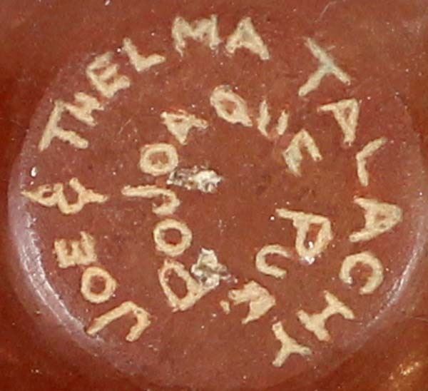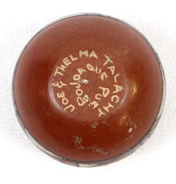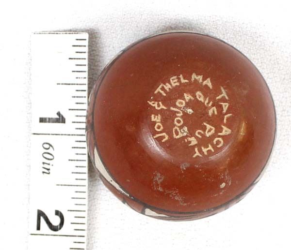Native American Pojoaque Pottery Seed Jar by Joe & Thelma Talachy, measures 1.5'' x 1.5'' and is signed on the bottom, FYI: ''Thelma Talachy, whose ancestral home is Pojoaque Pueblo, was born in 1942 and raised at Santa Clara Pueblo. Thelma comes from a family of outstanding potters. Her husband, Joe Talachy, born in 1943, is from Santa Clara Pueblo but moved to Pojoaque after his marriage to Thelma. They now make their home at Pojoaque Pueblo.''