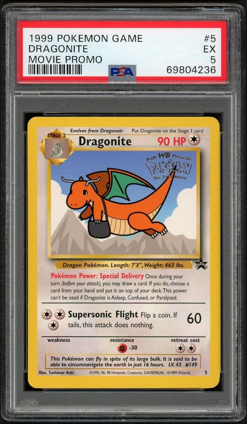 Vintage 1999 movie promo Dragonite, graded 5 EX by PSA.