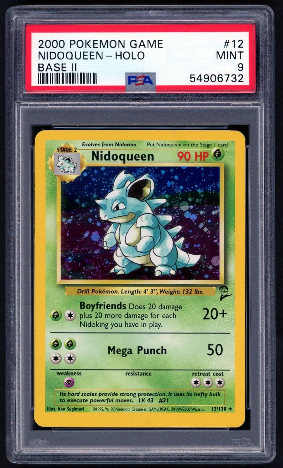 Investment grade early (2000) Nidoqueen Holo from Base Set 2, graded 9 MINT by PSA.