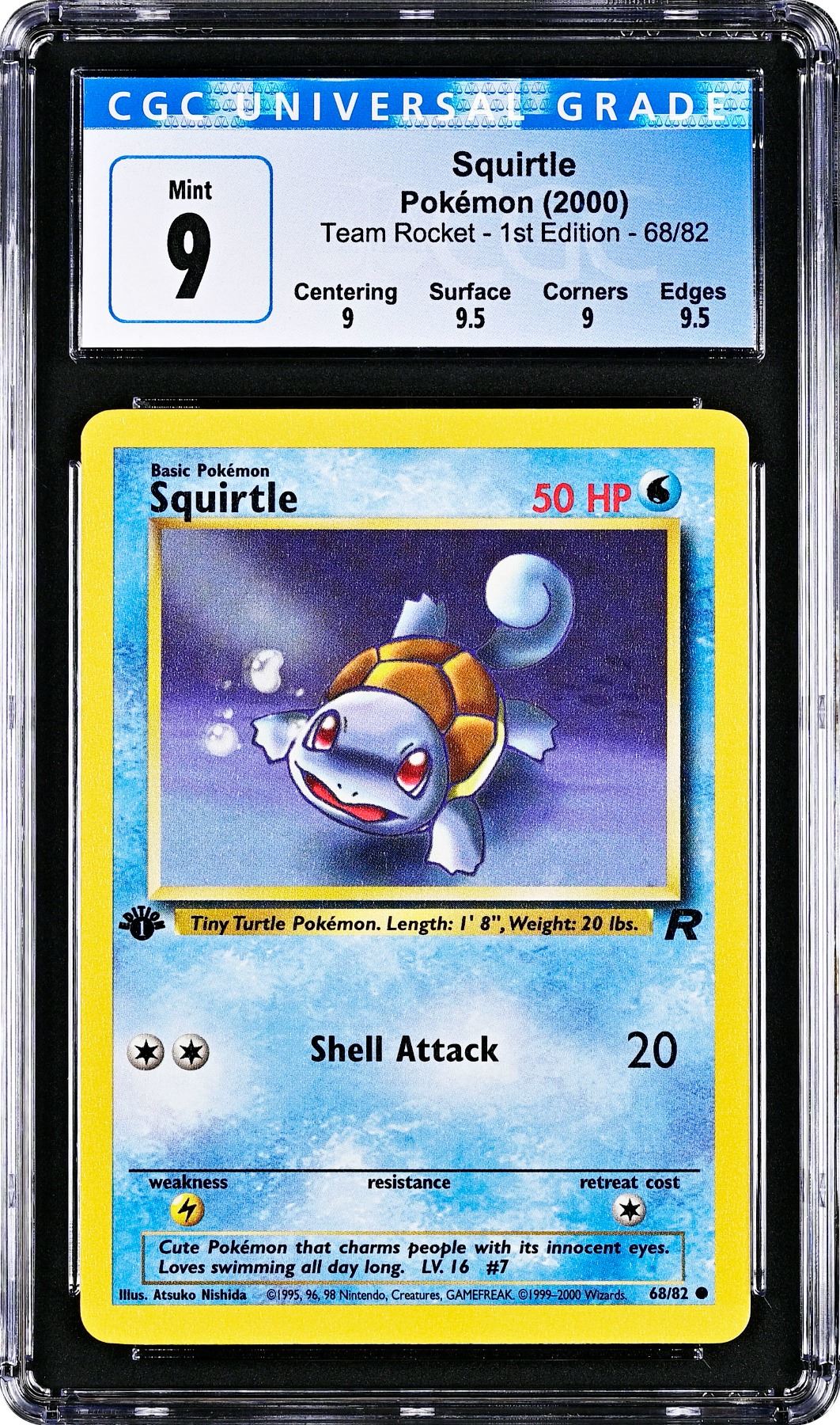 Another great, high-grade, early Pokemon card, this from 2000, Pokemon Team Rocket 1st Edition Squirtle, graded 9 MINT by CGC!