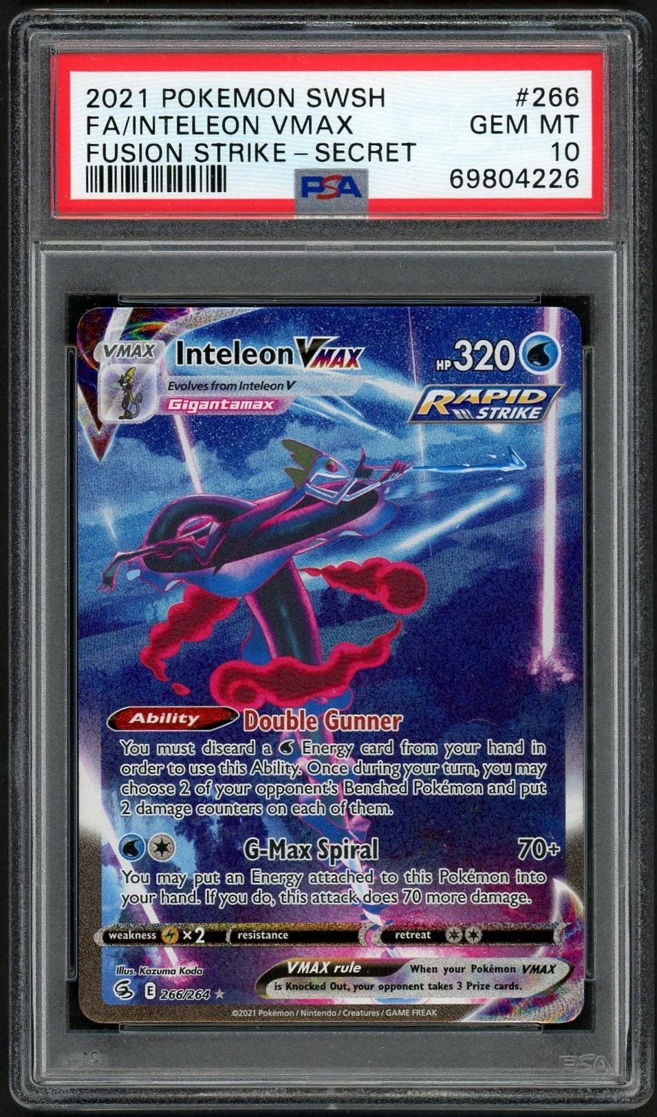 This is a stunner, gorgeous card, amazing color! 2021 Inteleon VMAX full art secret rare, graded a perfect 10 GEM MINT by PSA. Wow!