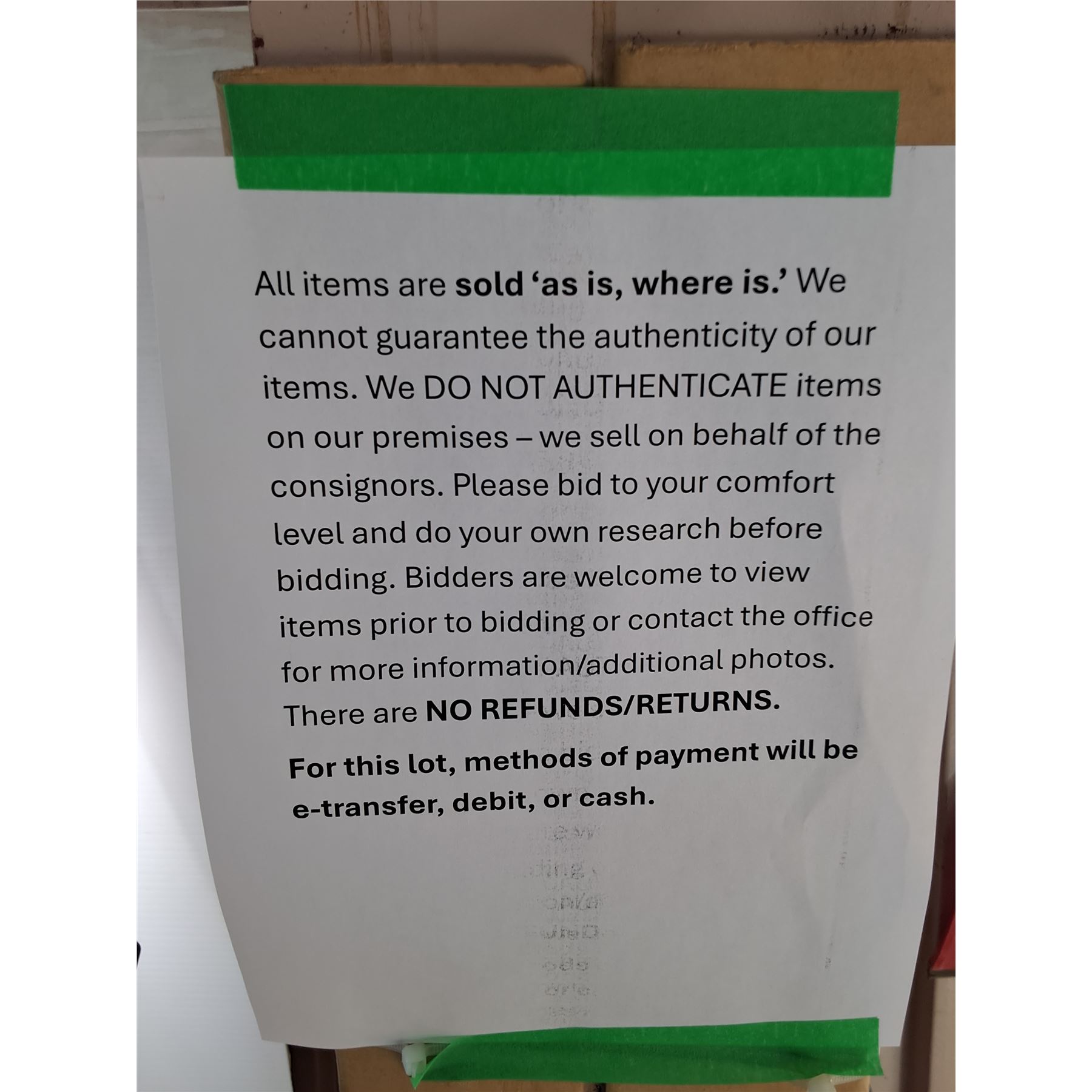 A online bidding premium may be applied to each lot purchased on the Internet. Federal GST and corresponding Provincial Sales Tax will apply to all purchases where applicable.