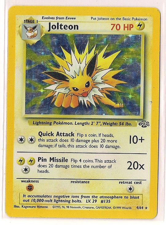 Pokemon Jungle Set Jolteon Rare Holographic Card 4/64. This card is Near Mint.