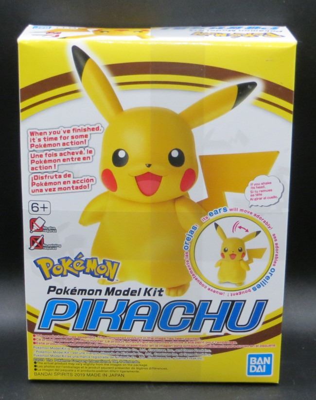This simple snap-fit plastic kit set allows modelers to build Pikachu! Approximately 3" inches in height, bigger size than previous evolution set releases. All parts come molded in color, no painting is required, but the best thing about model kits is that you can be creative and make it your own. Made by Bandai. Officially licensed by Nintendo.