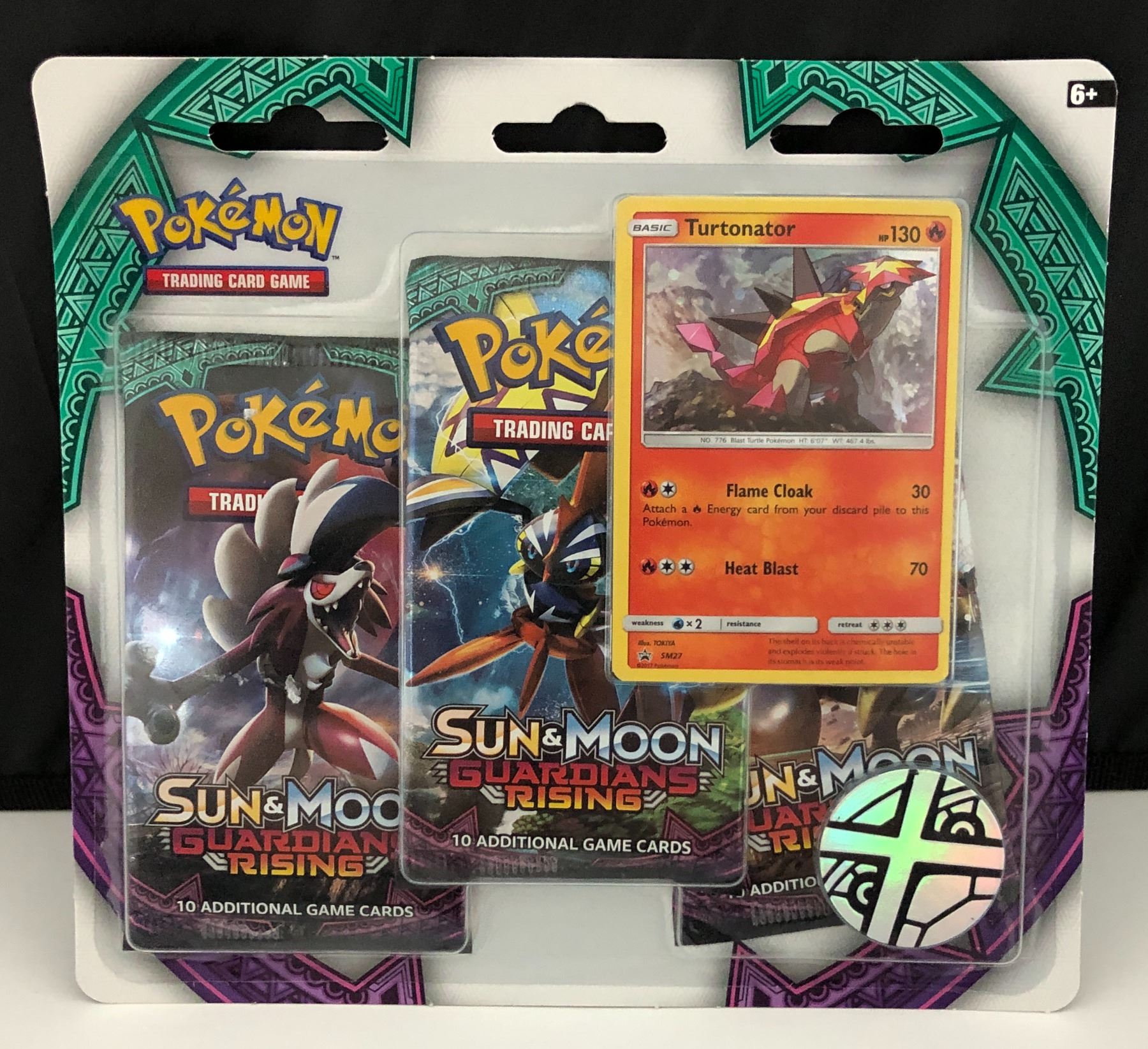 Pokemon TCG Sun & Moon Guardian Rising: Turtonator - 3 Pack Blister with Coin New Sealed