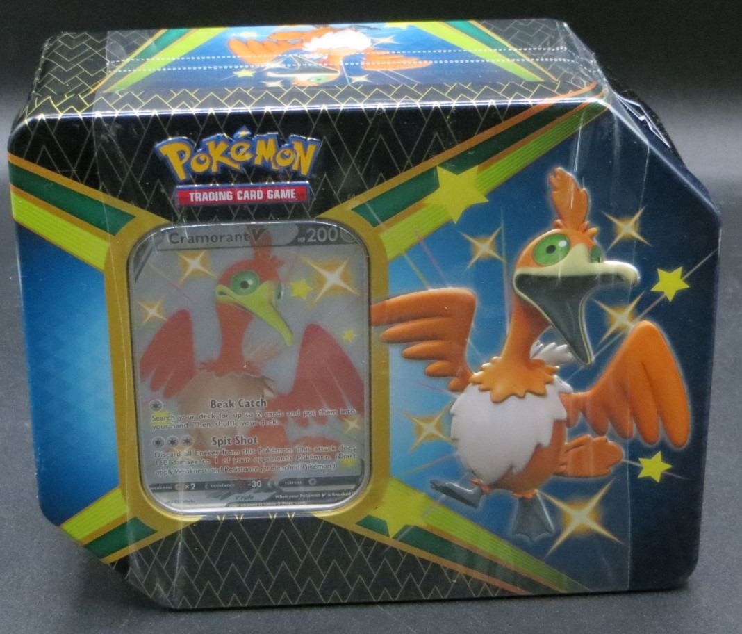 The Shiny Vault is full of distinctively colored Pokémon, Choose the fluffy power of Eldegoss V, the lightning strikes of Boltund V or the watery missiles of Cramorant V in the Pokémon Trading Card Game: Shining Fates Tin. Each of these fantastic tins contains a super-powerful (and Shiny) Pokémon V. with the tricks, the looks, and the sheer bravado to take you to the top in your next Pokémon battle!