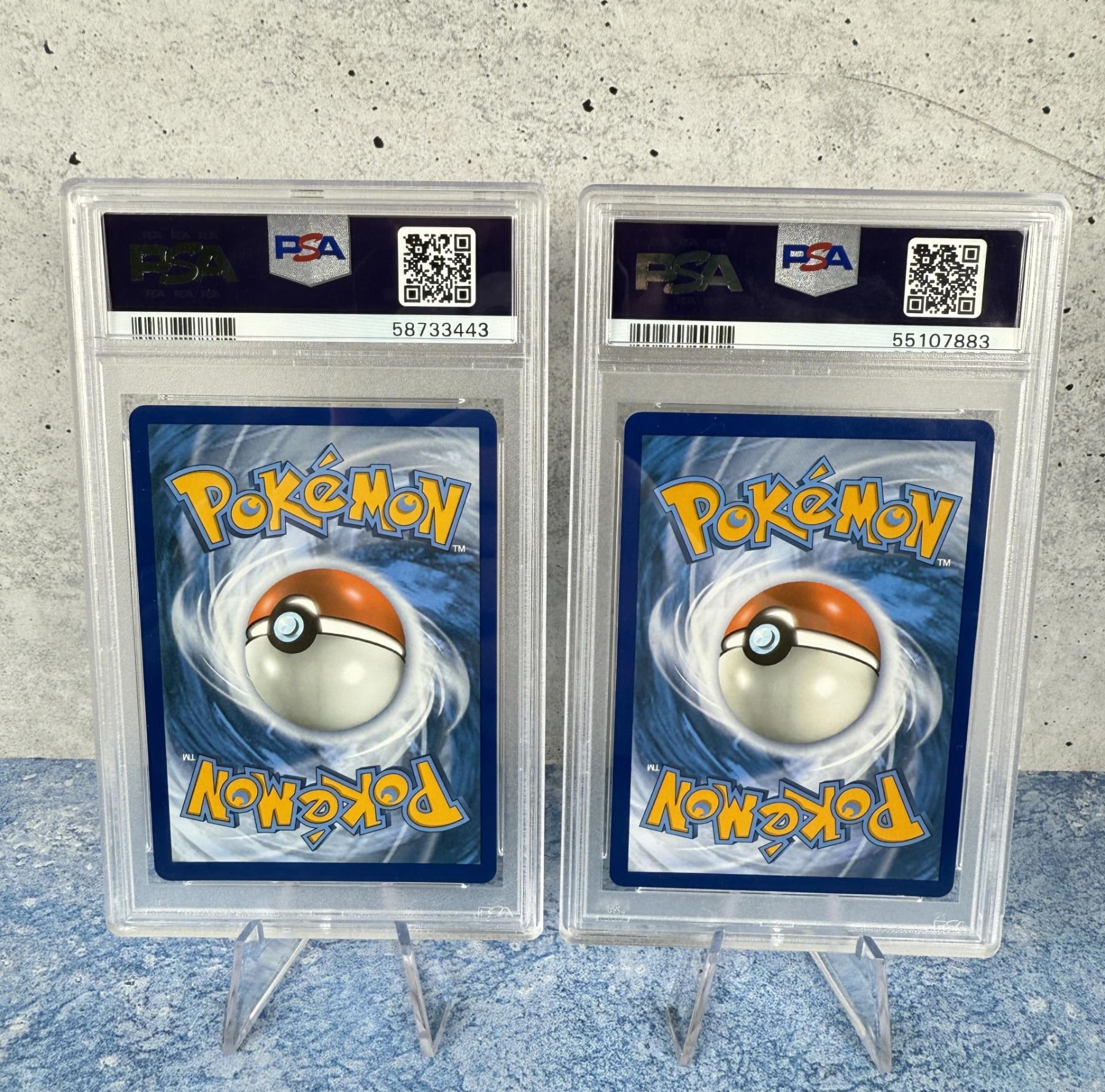 PSA Graded. The one on the left has a surface ink error that covers the entire card.